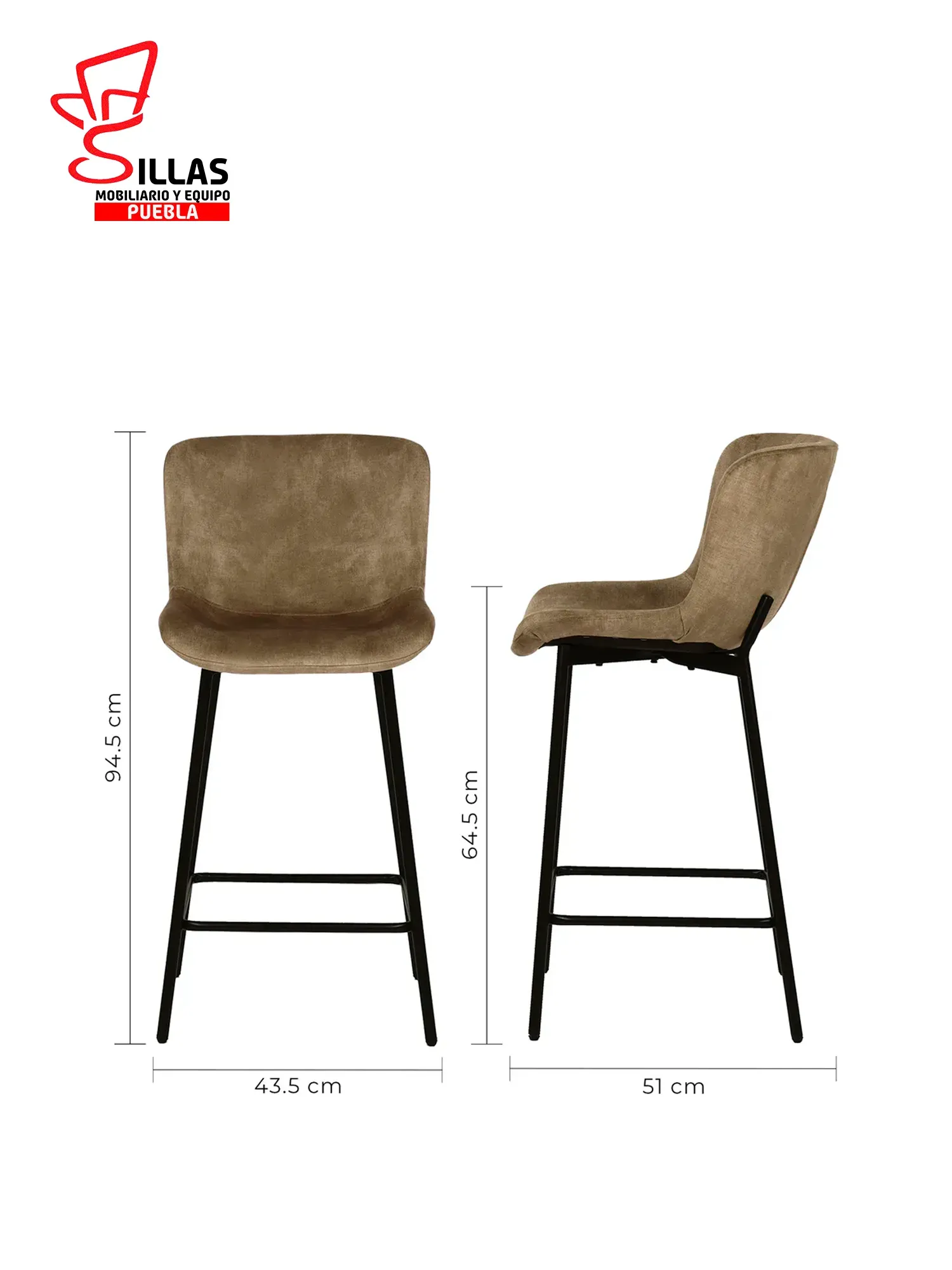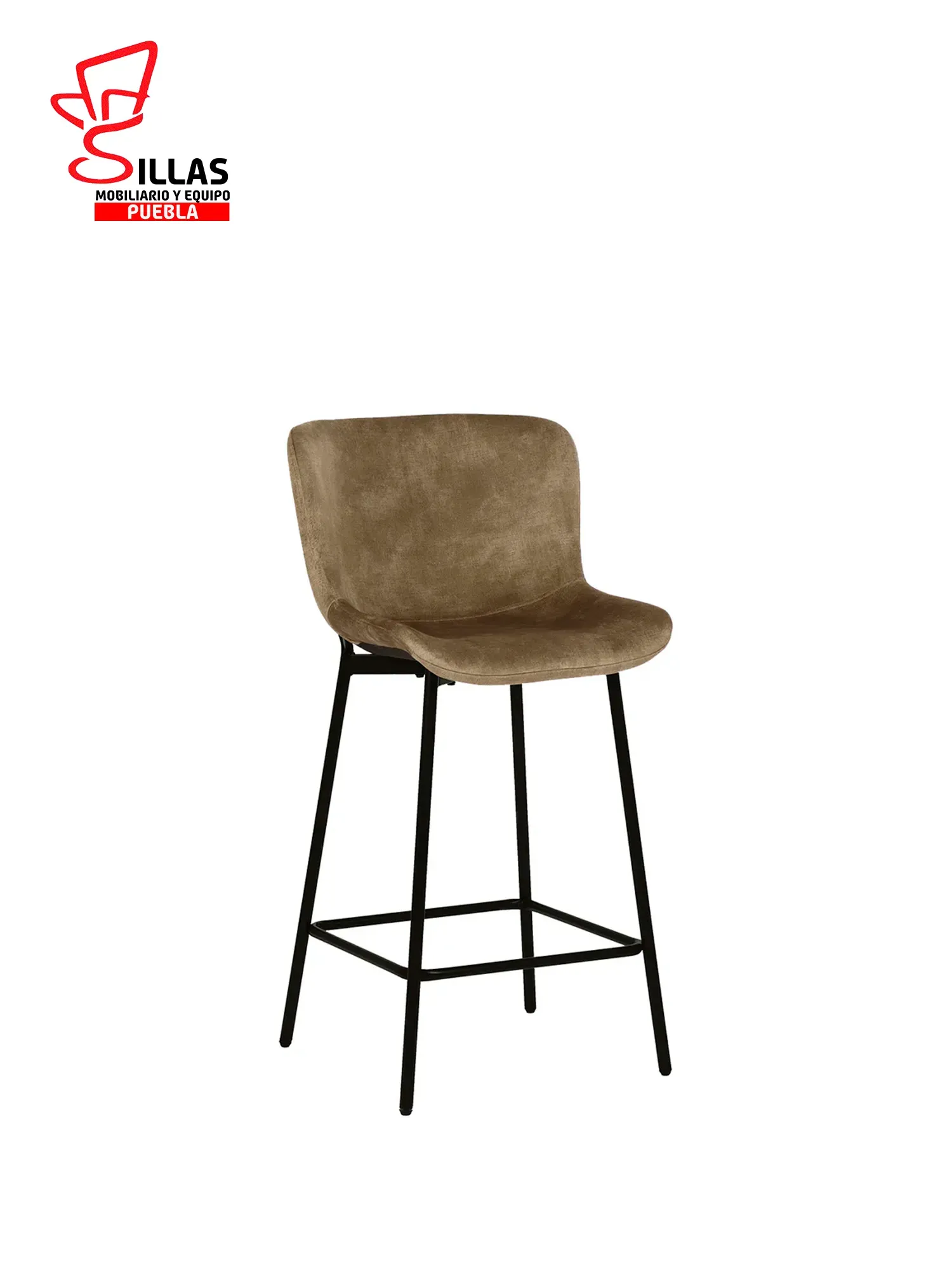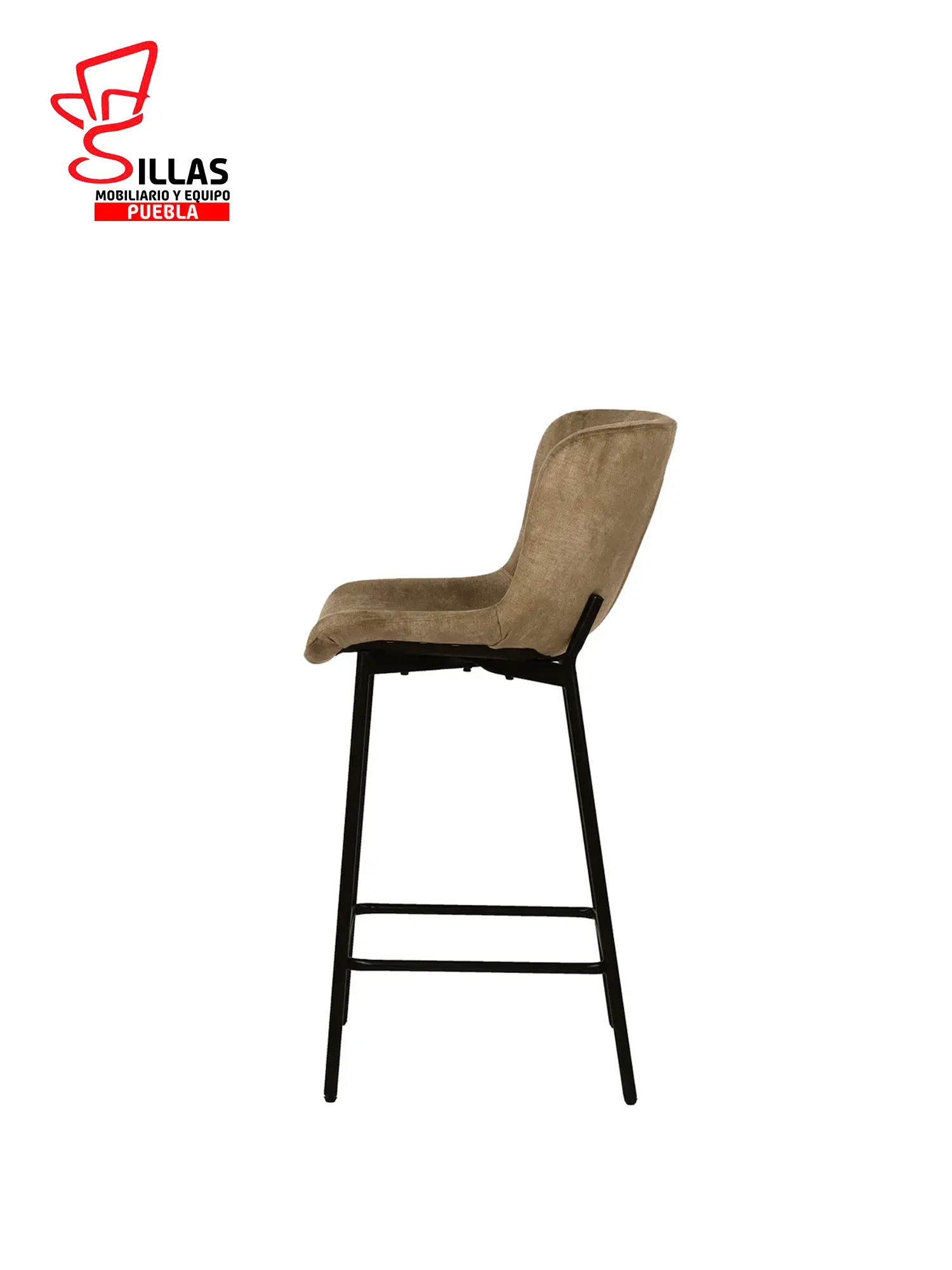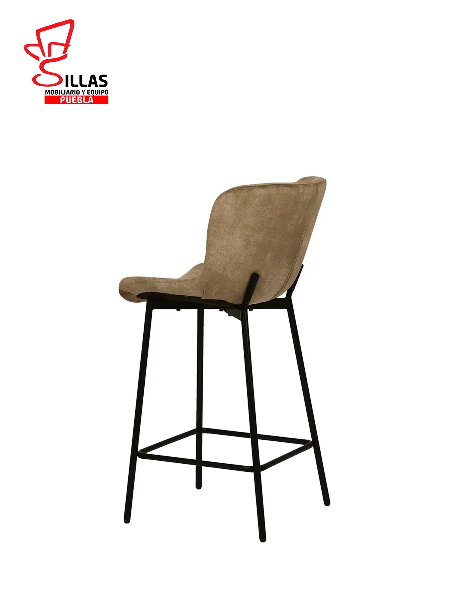 Este banco cuenta con un respaldo y asiento tapizados en tela de alta calidad, disponible en tonos marrón y gris. Las patas están revestidas en un elegante acabado negro mate y son del tipo KD (Knock Down) para facilitar su ensamblaje.