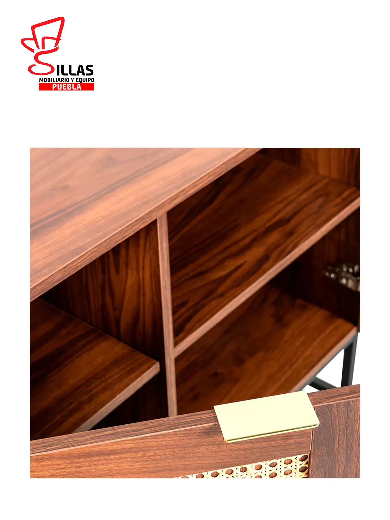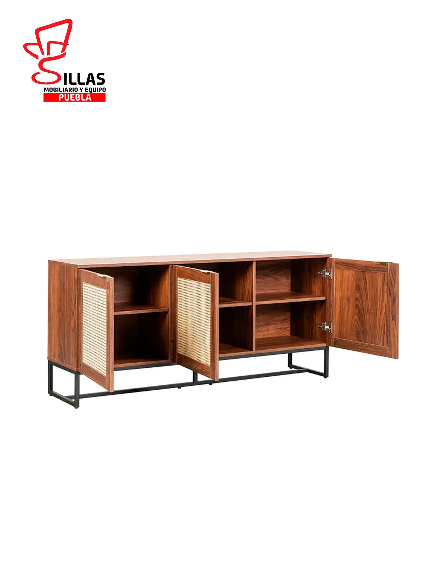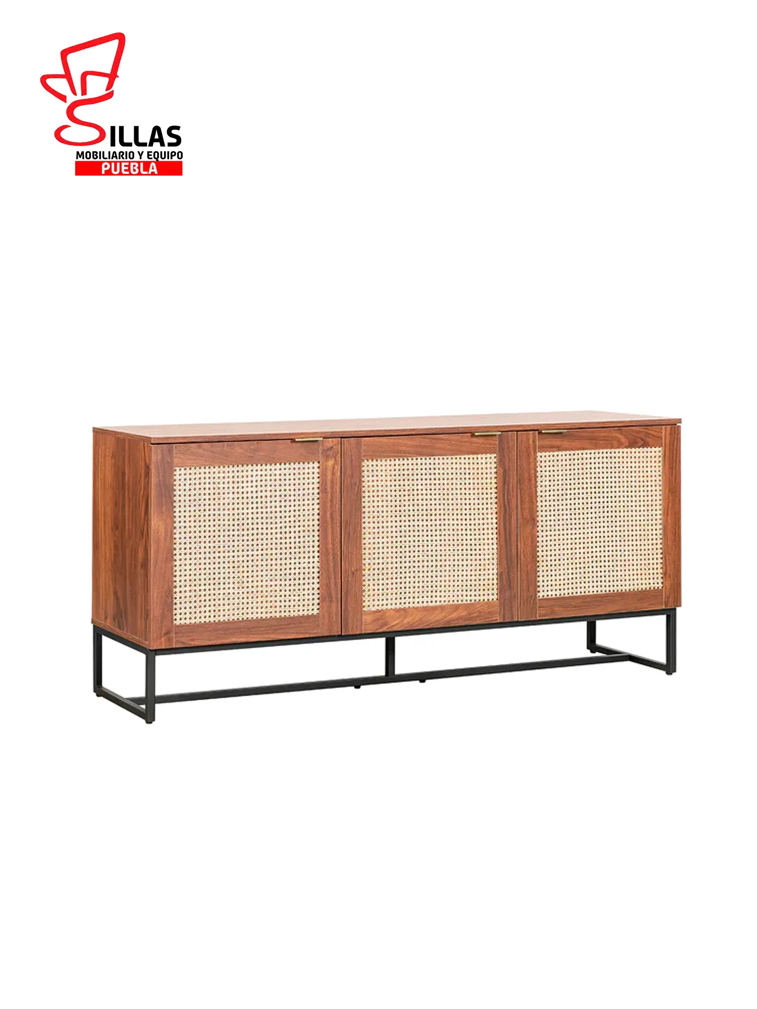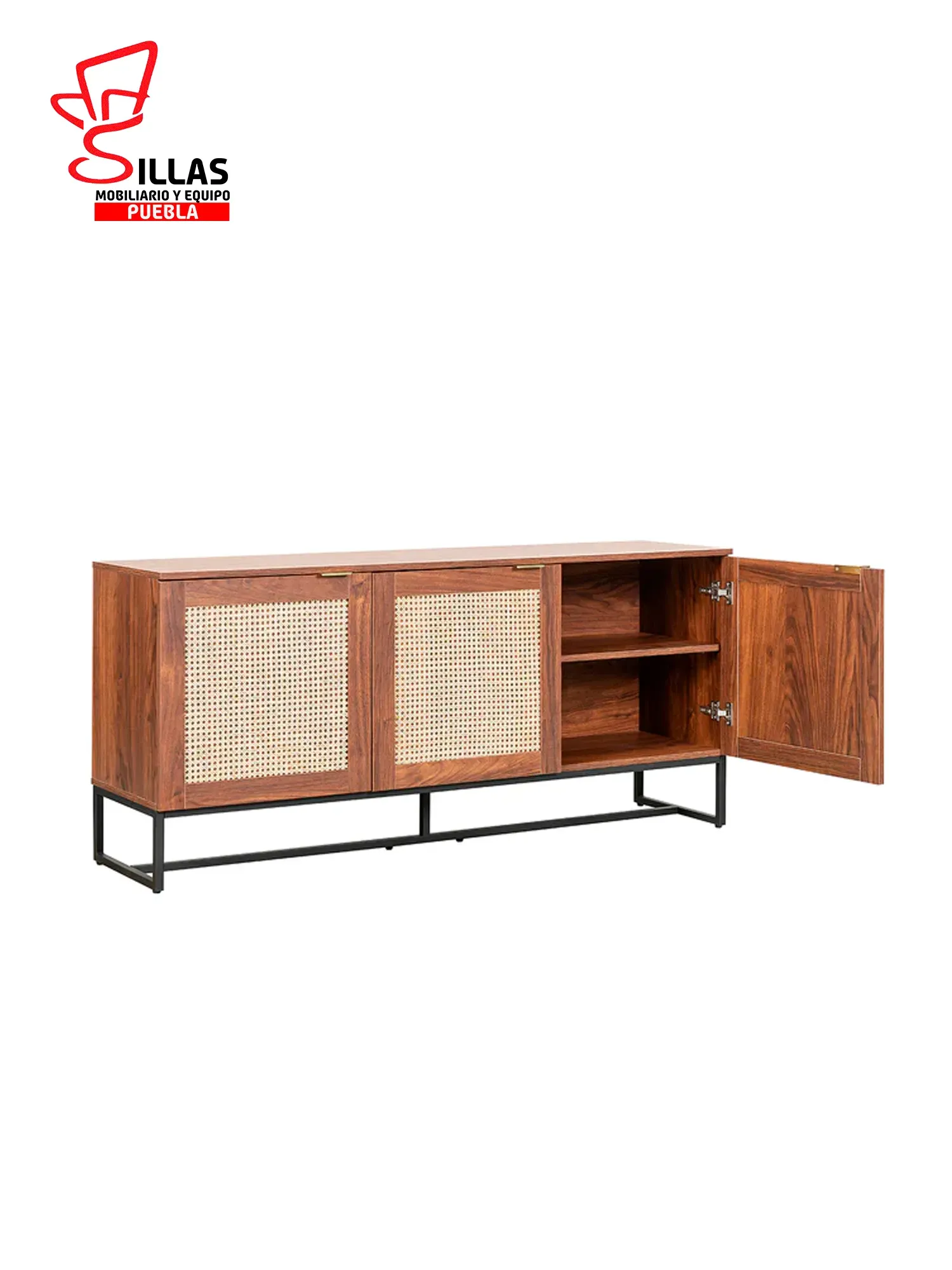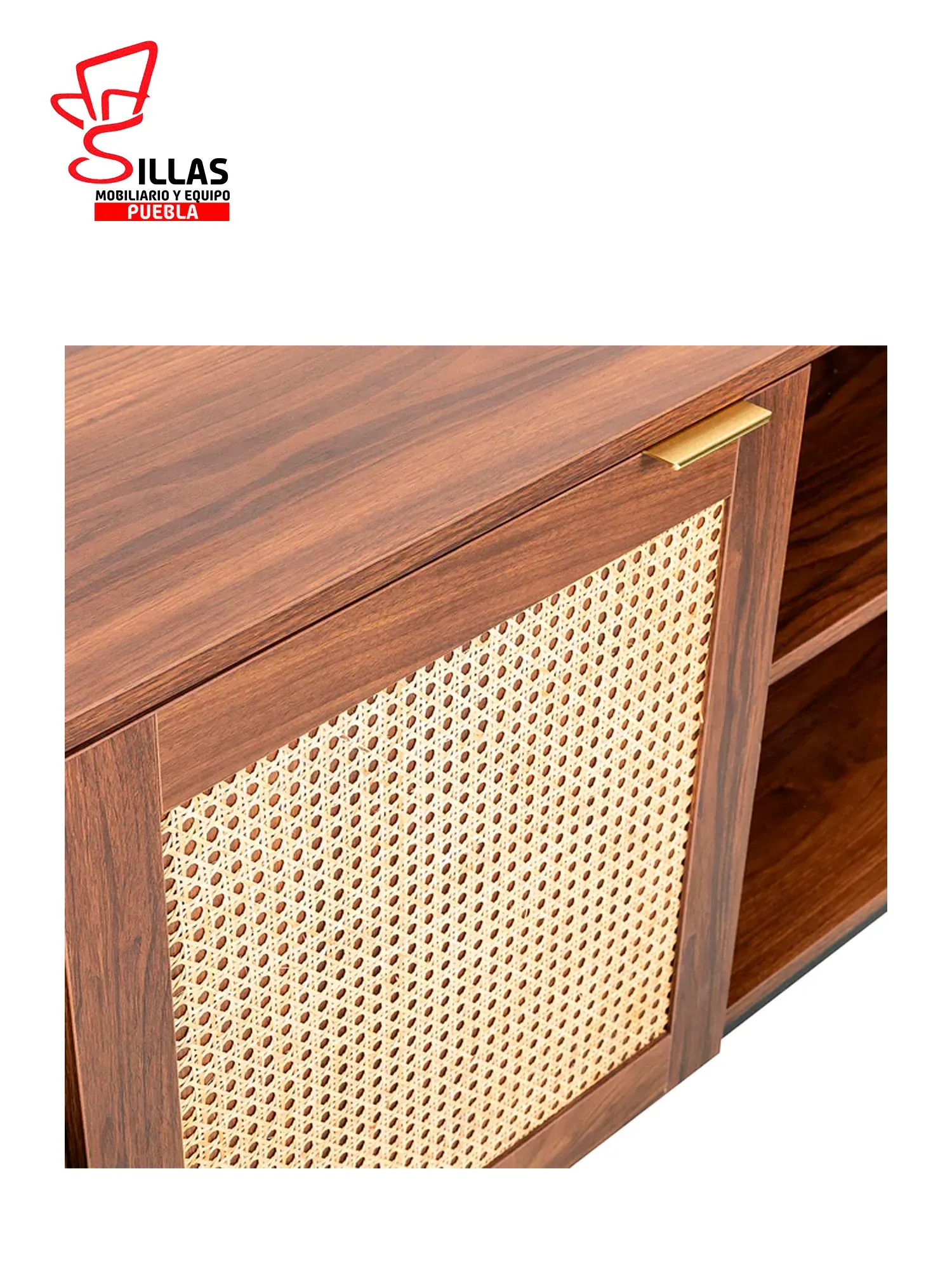 Credenza Akumai * Fabricada en Melamina de 14 MM color encino , dotada de 3 cajones con correderas y 2 puertas de alta resistencia con rattan , ideal para realzar cualquier espacio.