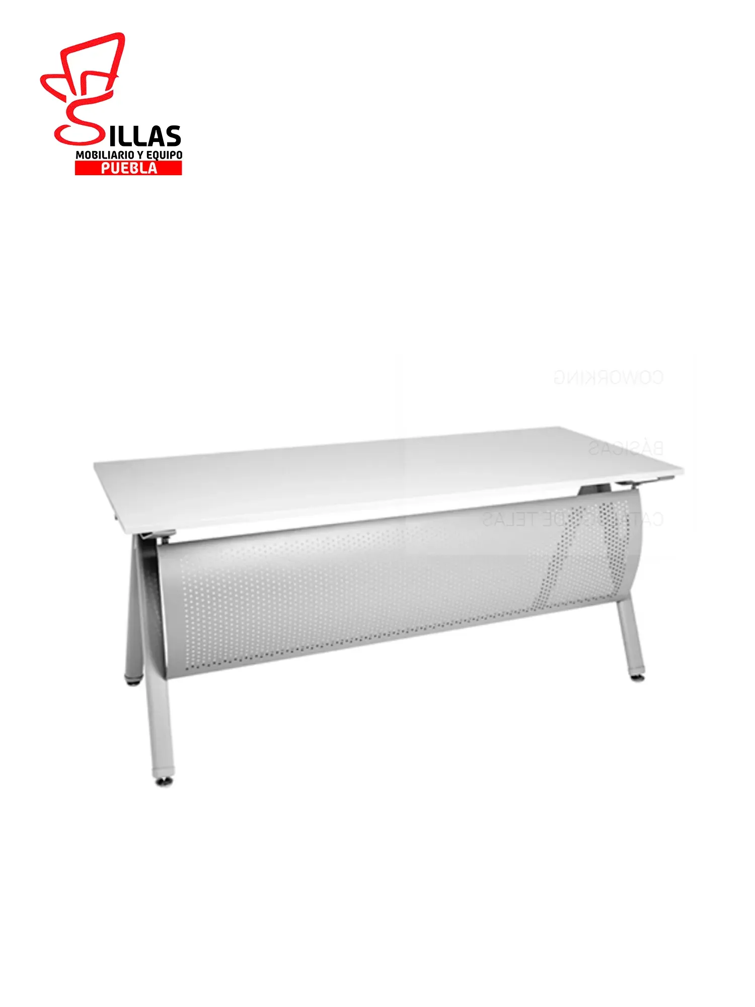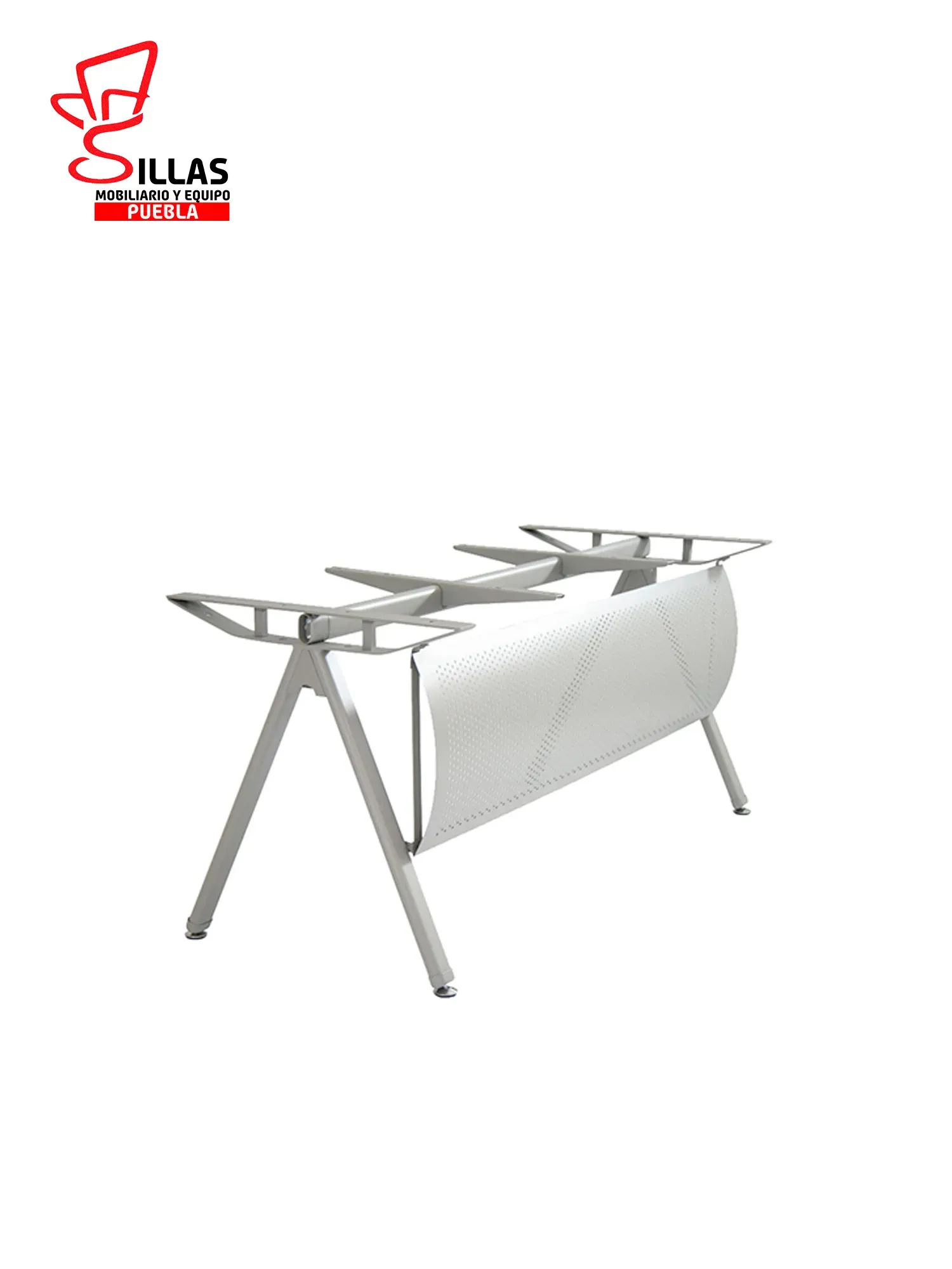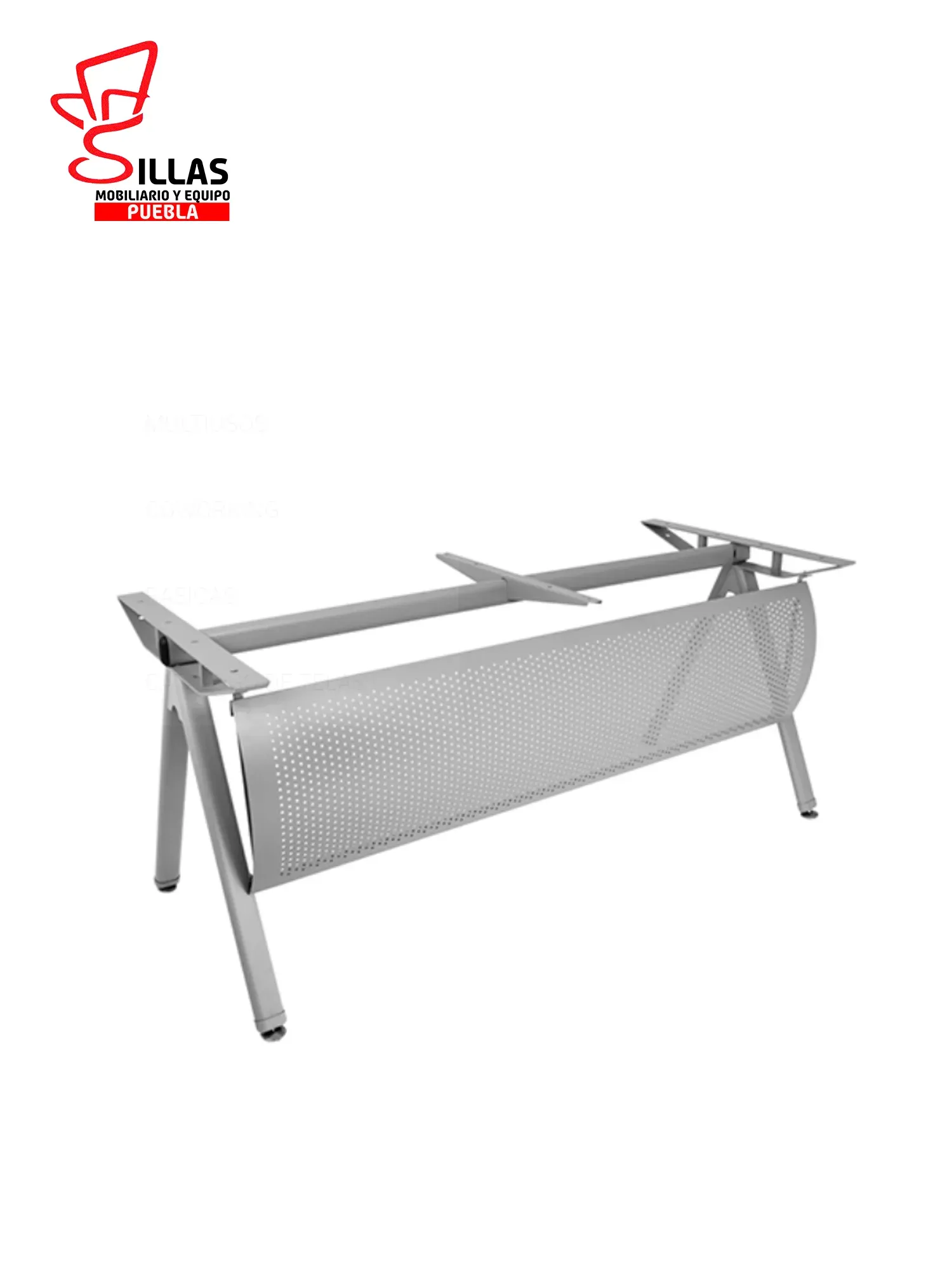Estructura metálica en pintura plateada / Cubierta de 28 MM en varios tonos de melamina / Niveladores