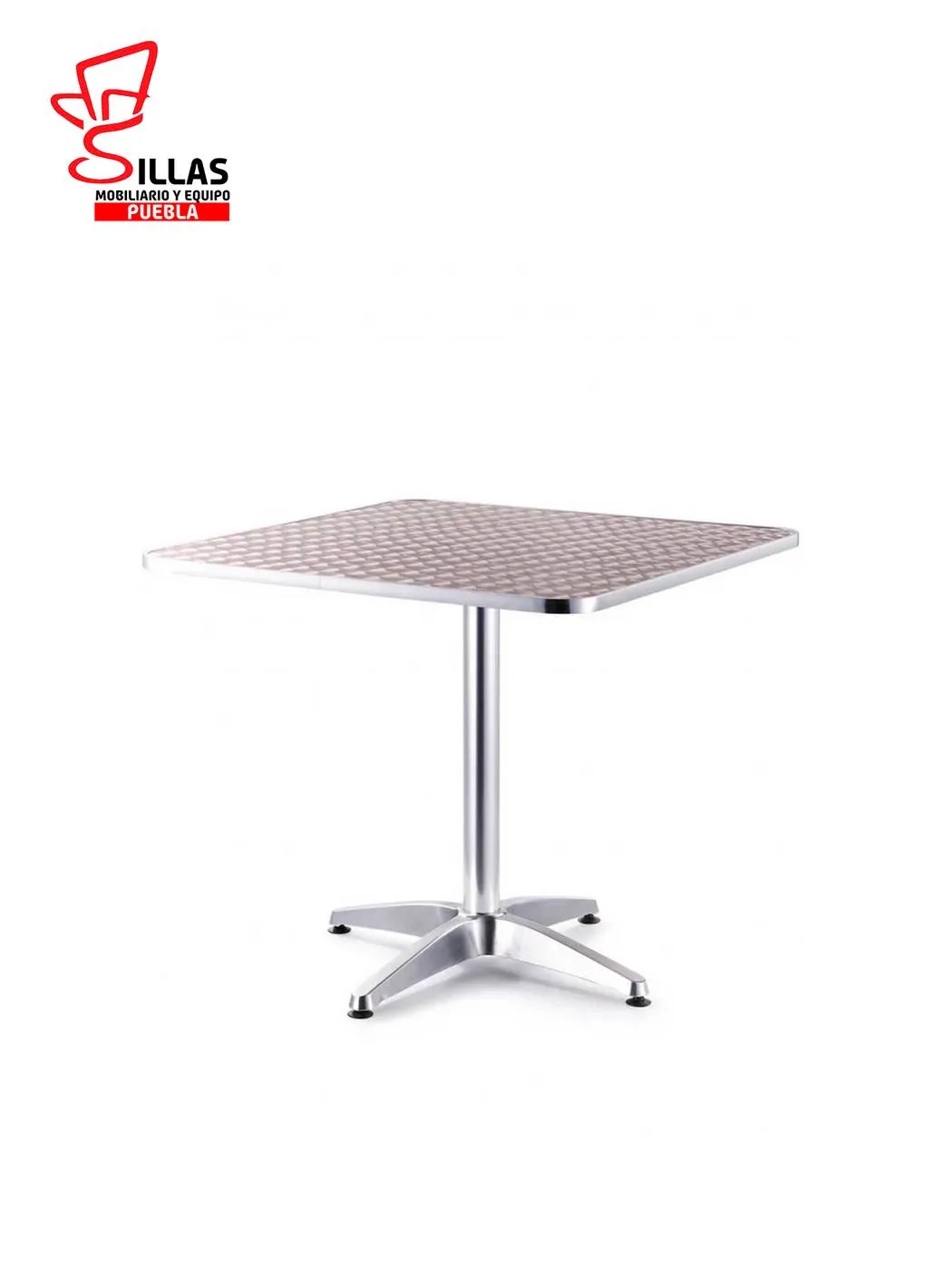 Mesa de Aluminio Cuadrada * Recubierta en lámina de aluminio y soportada en una base de aluminio fundido , dotandola de ligereza y practicidad * Ancho: 80 Profundidad: 80 Altura: 75 cms CUADRADA