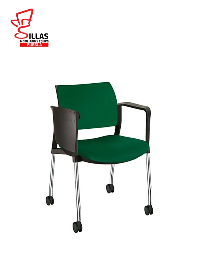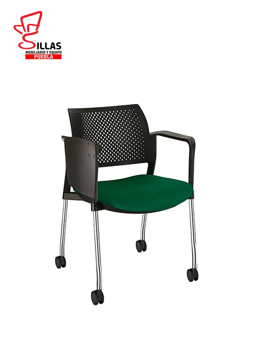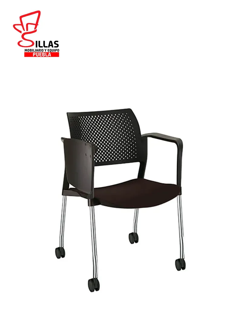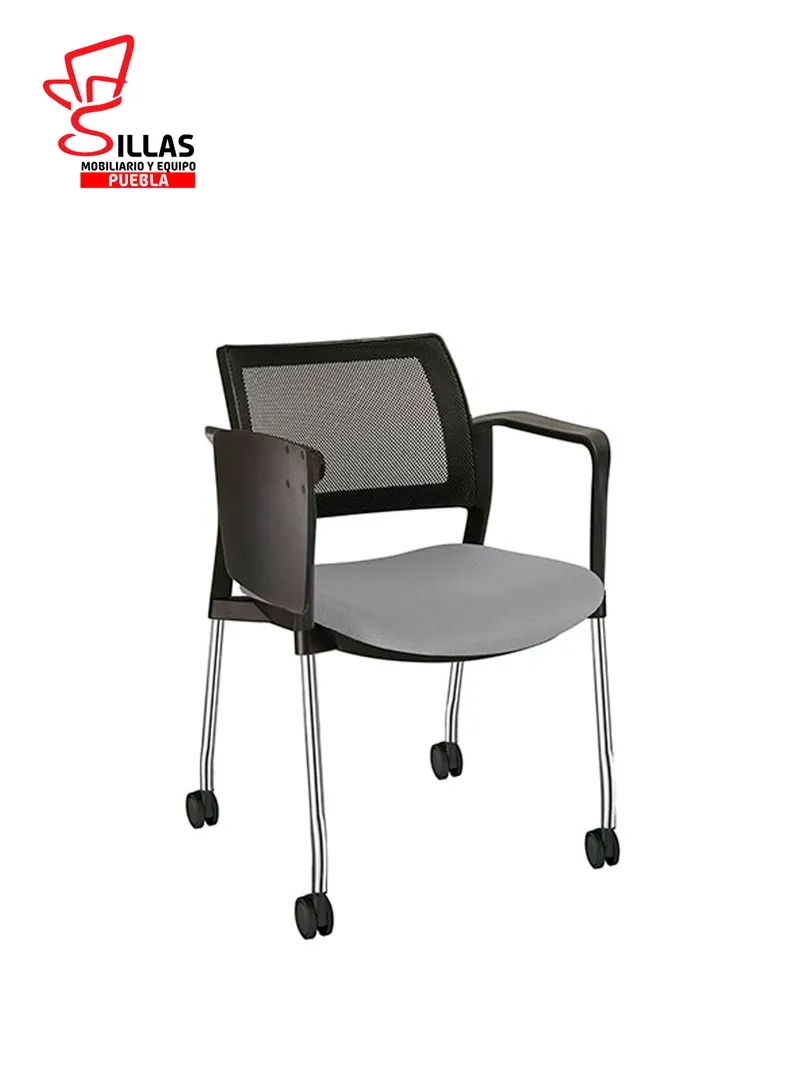 Estructura: de acero tubular de 7/8" de diámetro, calibre 14; terminado en cromo, con rodajas giratorias tipo dual color negro, con descansabrazos de polipropileno en color negro y con paleta lateral antipánico color negro fijada al brazo mediante un dispositivo.