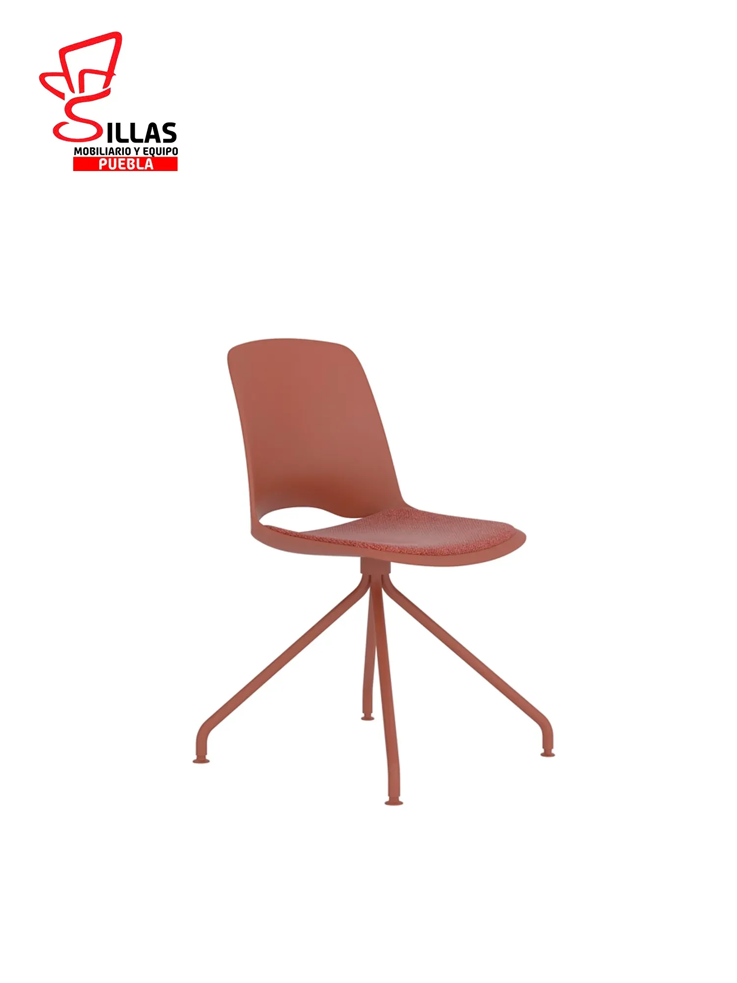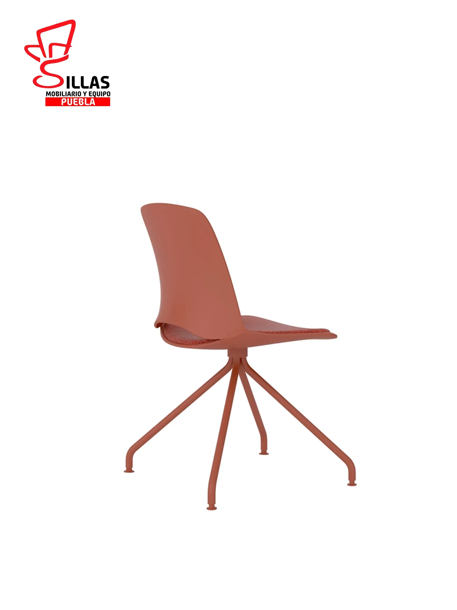 Respaldo y asiento inyectado en polipropileno de alta densidad / Tapiz en tela color ladrillo / Base de 4 patas de tubular redondo giratoria / Resbalones de metal con poliuretano inyectado antideslizantes