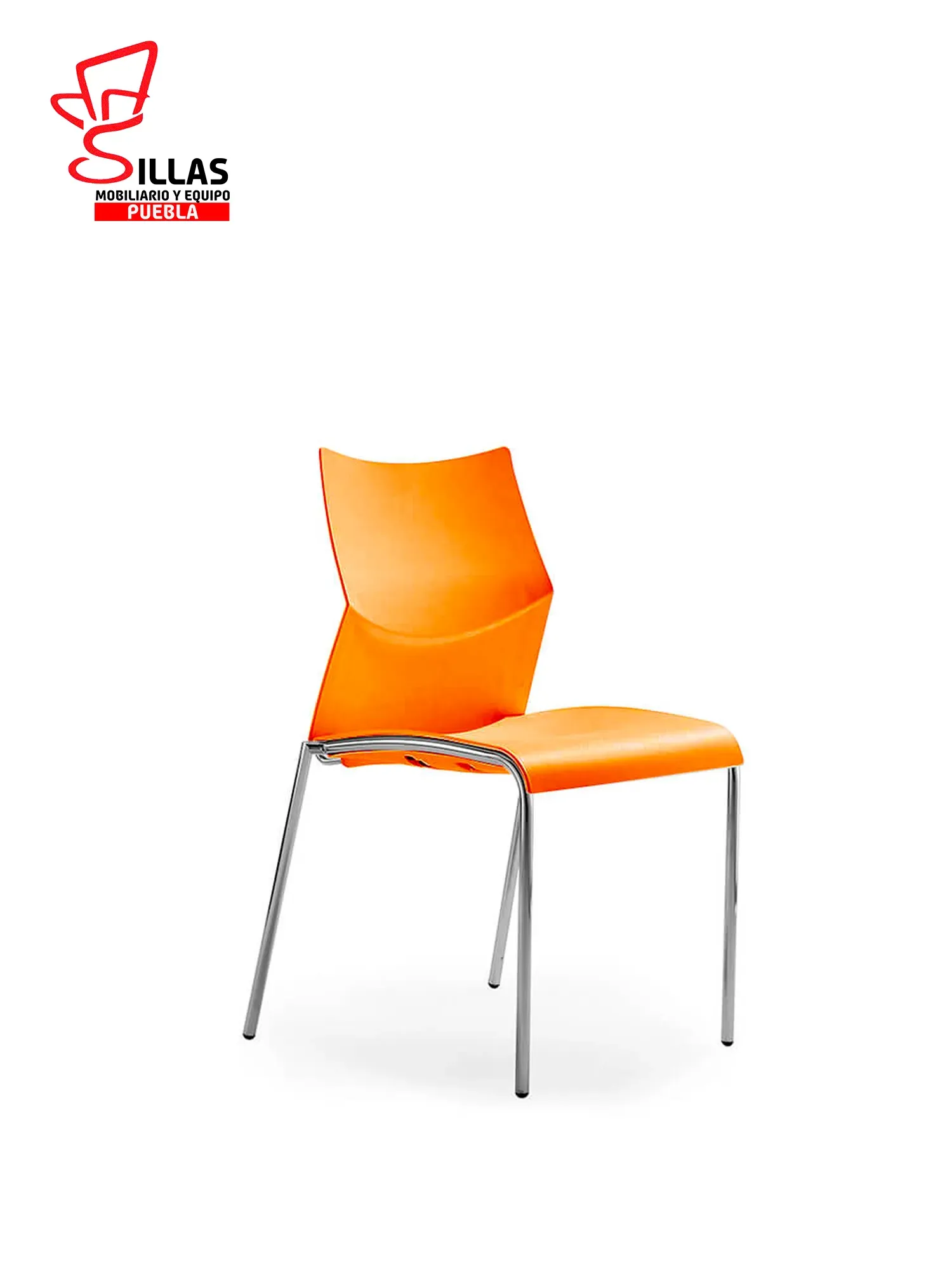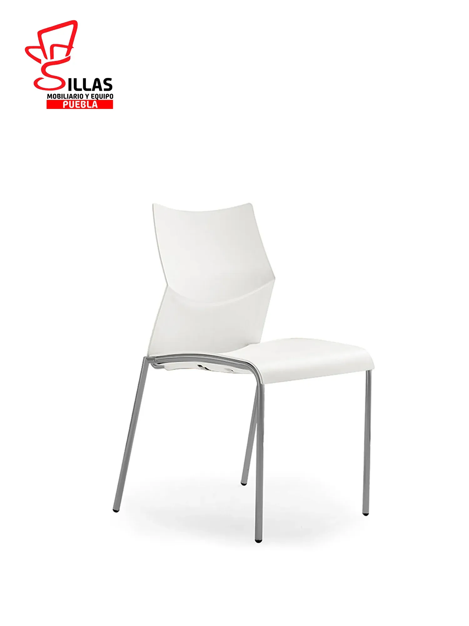 Silla con asiento y respaldo en polipropileno. Estibable. Para uso interno.