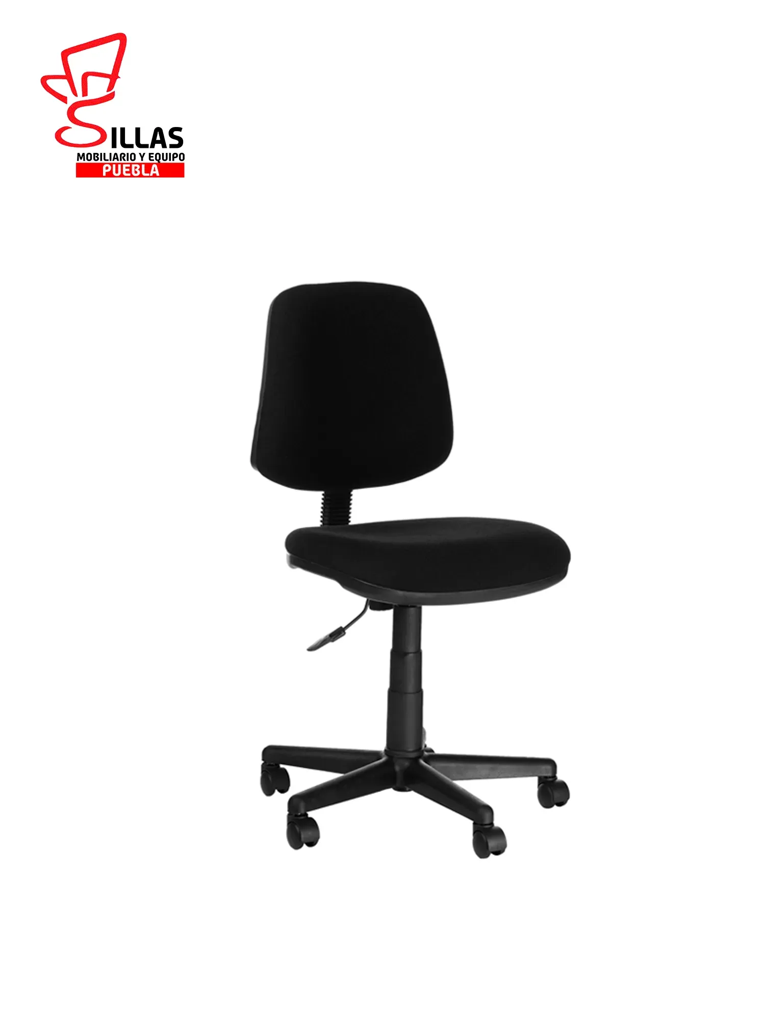 Silla secretarial con base de estrella inyectada en poliuretano rigido de 24" con llantas giratorias / Pistón secretarial / Tapiz en tela color negro