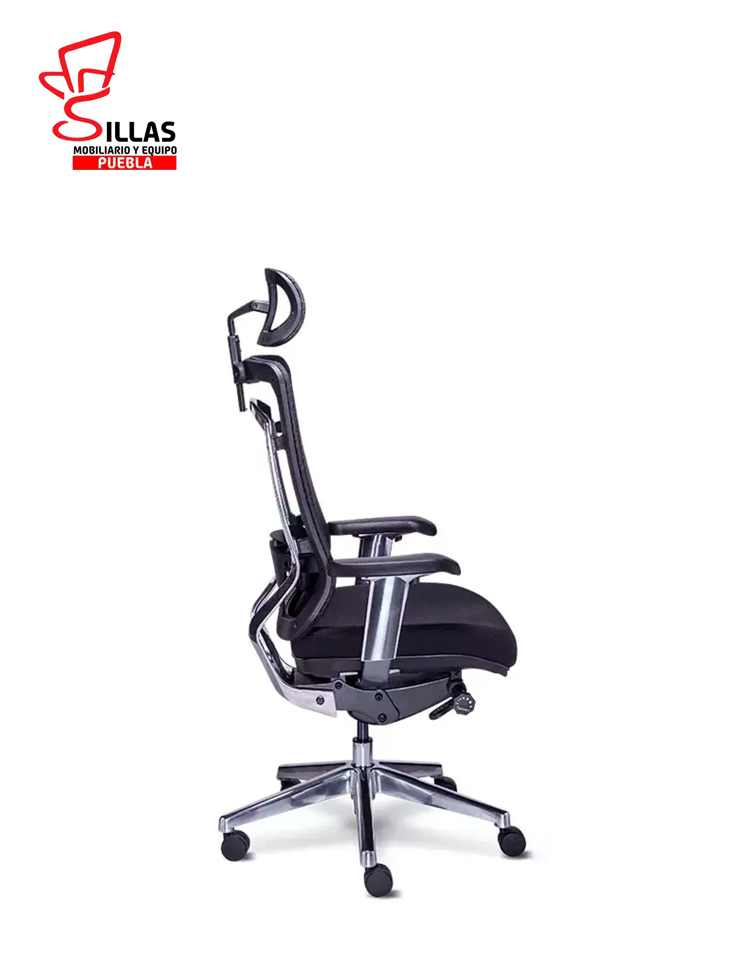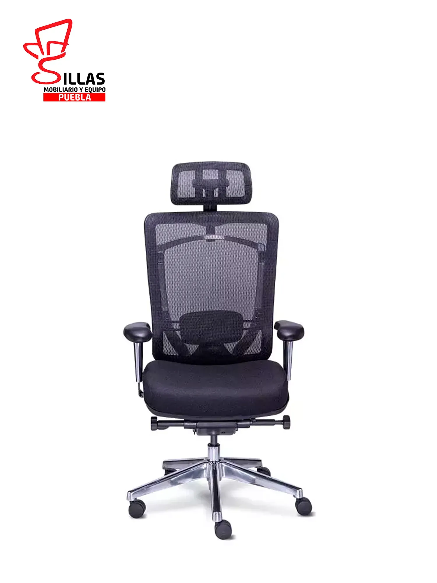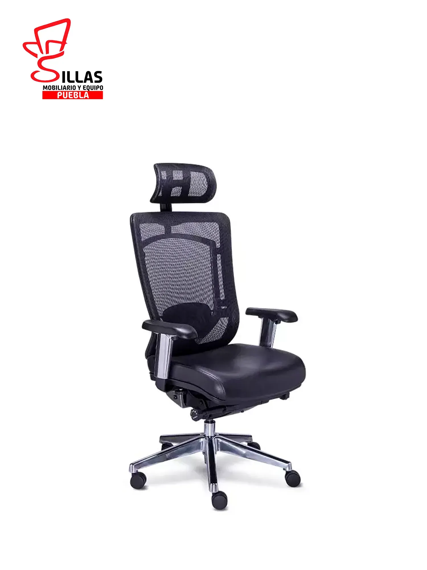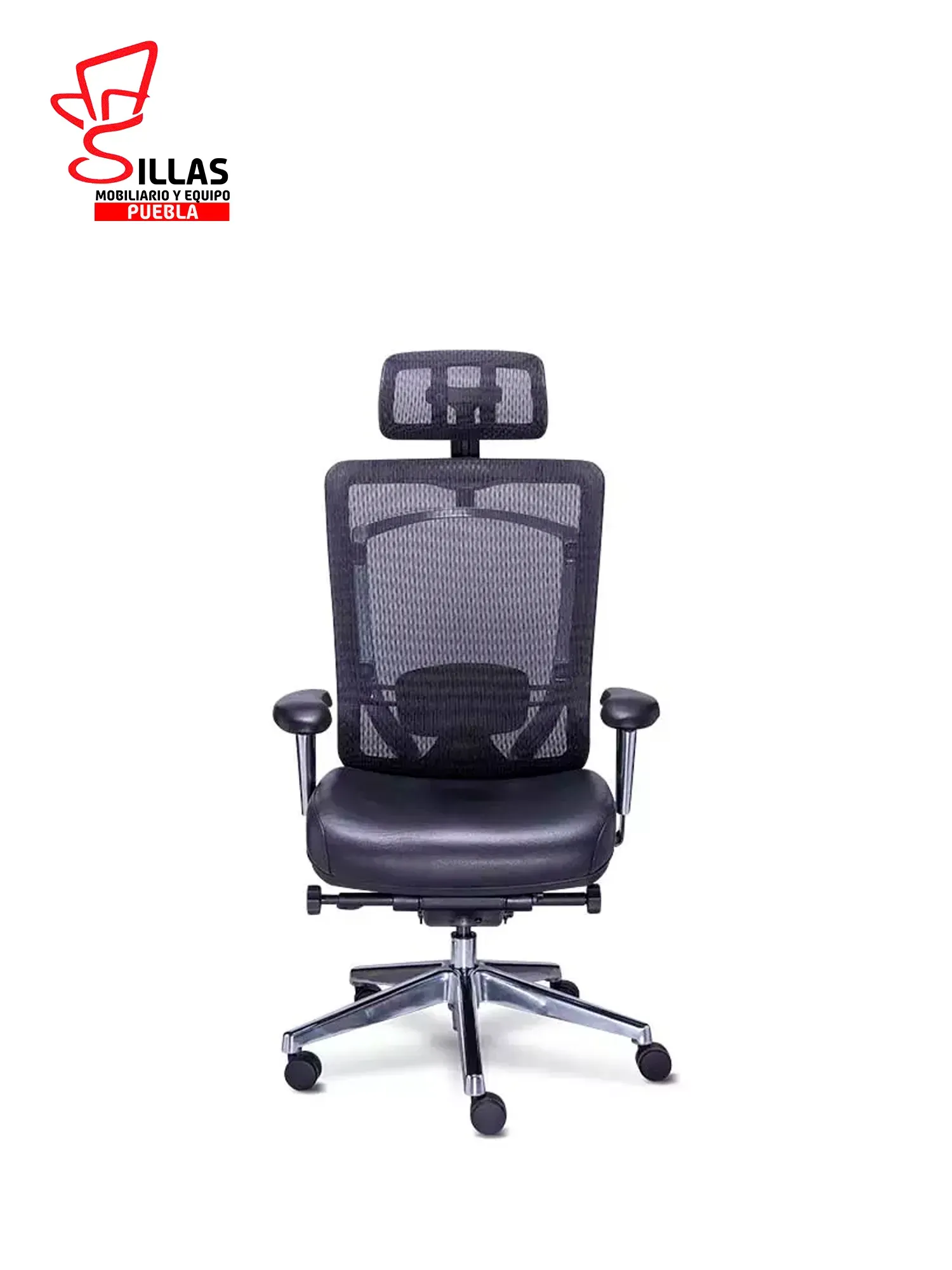 Sillón ejecutivo con cabecera ajustable dynamic tapizado en piel. Cuenta con un mecanismo de reclinamiento synchro con 4 posiciones con maneral para regular la tensión y antishock, además con ajuste de profundidad de asiento. Cuenta con soporte lumbar independiente al marco...