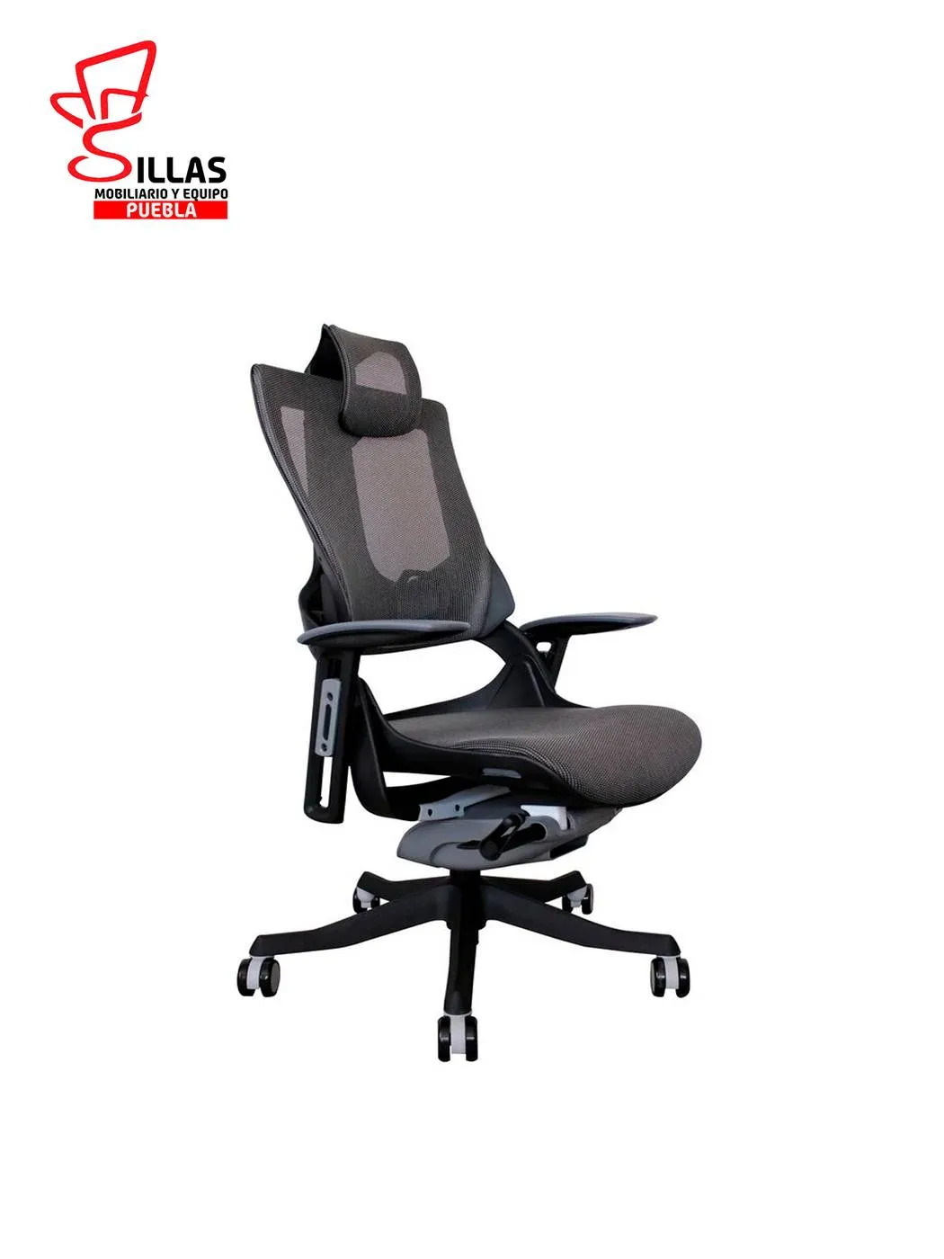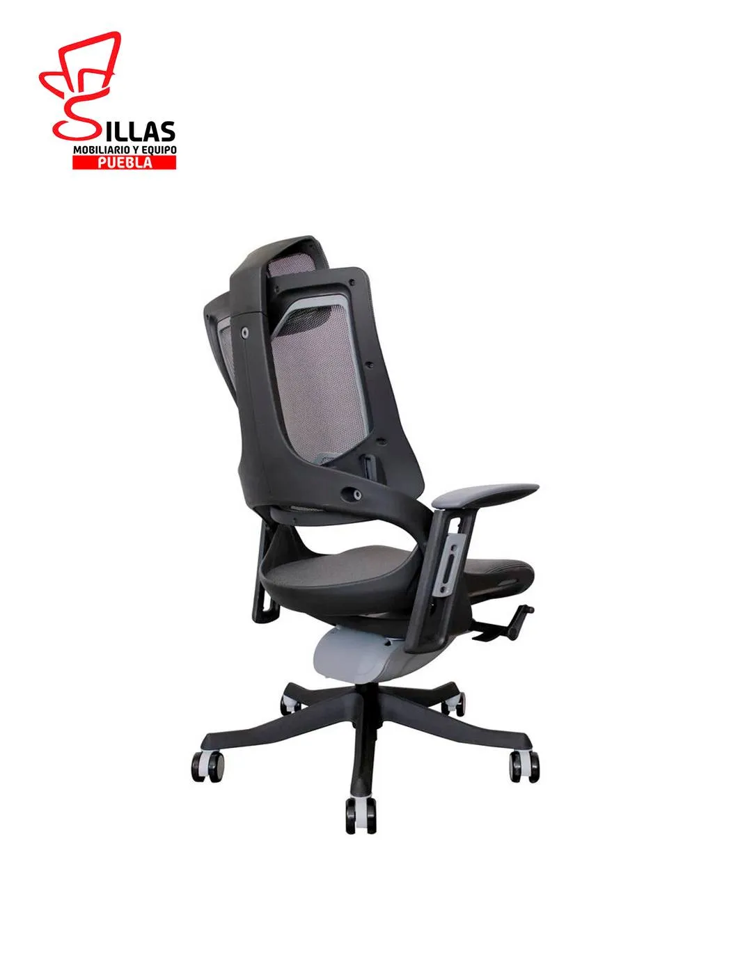 - Estructura Blanca, Cabecera tapizada en tela con ajuste de altura/Respaldo tapizado en malla con soporte lumbar ajustable. Asiento tapizado en tela, con espuma de poliuretano inyectado/Mecanismo DONATI synchro de 2 palancas, deslizable, con ajuste de altura y...
