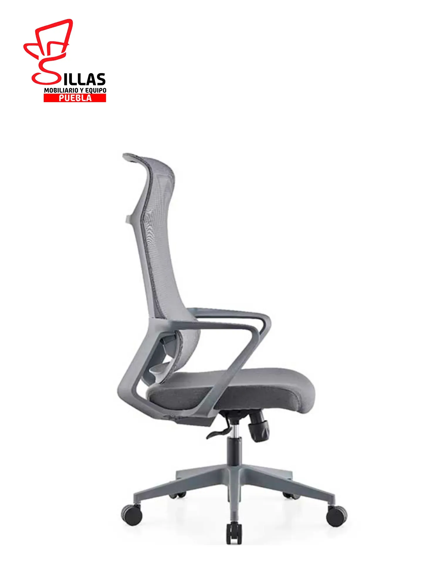Respaldo Alto de polipropileno tapizado en malla transpirable / Cabecera amplia fija / Fresca para zonas y temporada de calor / Asiento acojinado / Mecanismo reclinable / Ajuste de altura de asiento neumatico por palanca / Ajuste de tension de reclinación por perilla /Bl...