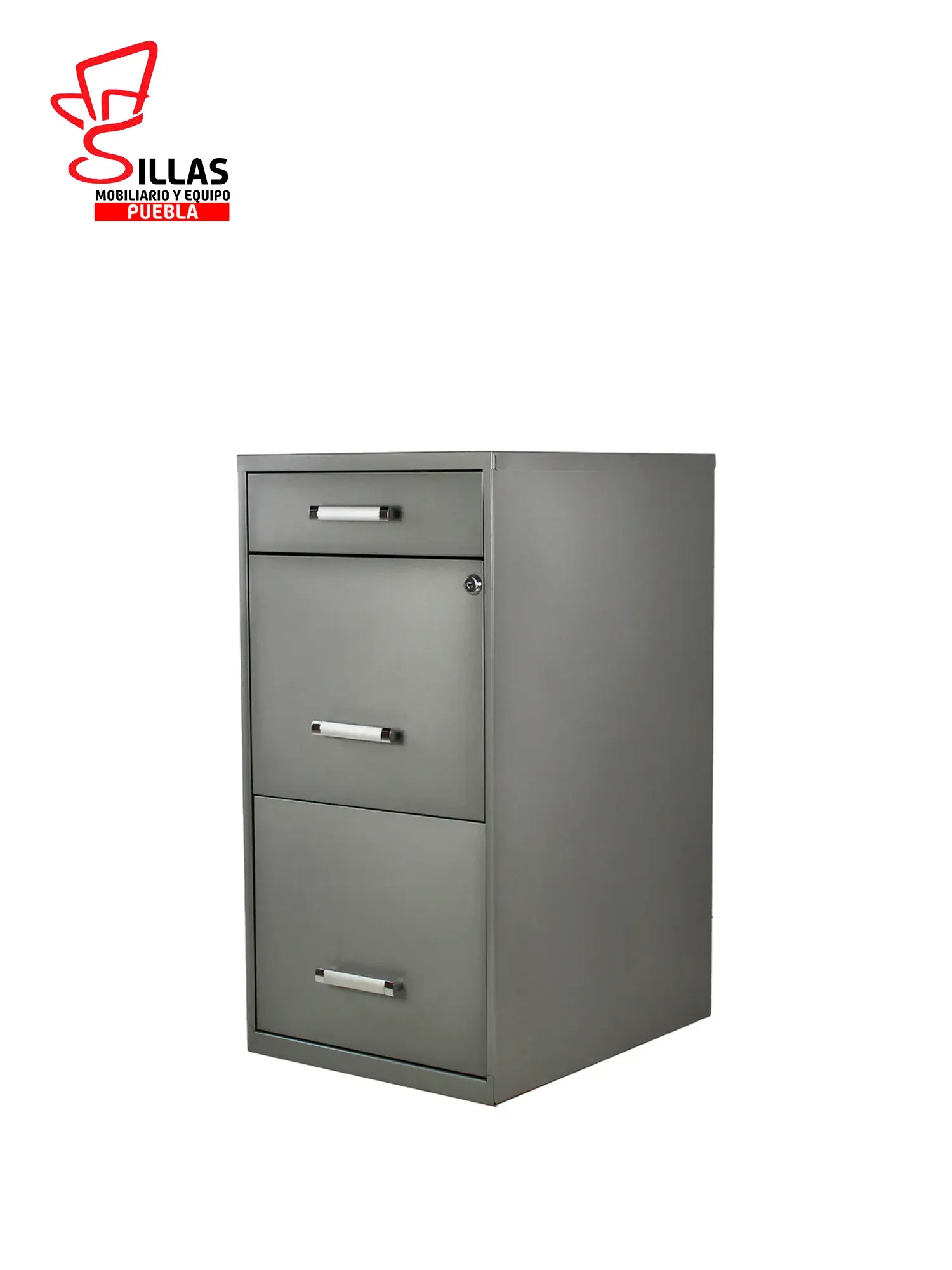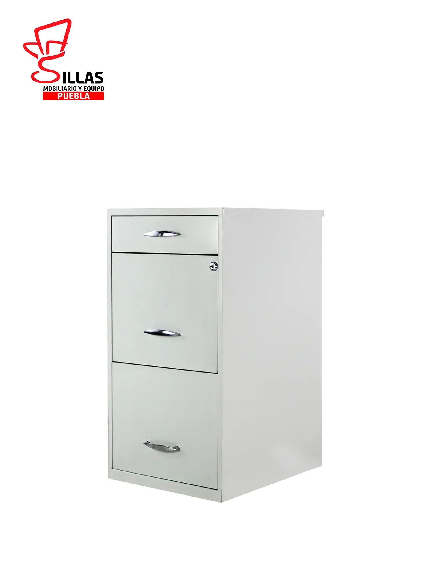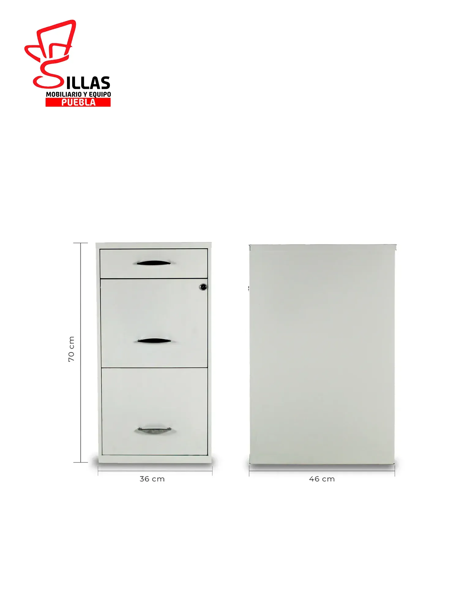 Estructura metálica con un cajón papelero en la parte superior, y dos gavetas de almacenamiento tamaño carta; gaveta media con cerradura y juego de llaves (solo cierra los dos primeros), convirtiéndola en el...