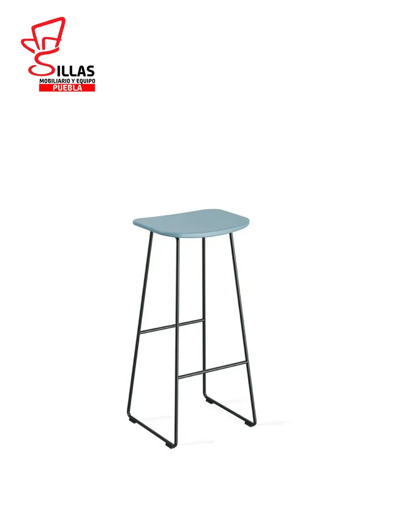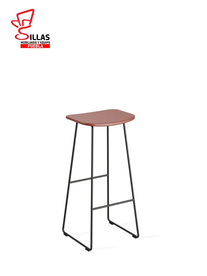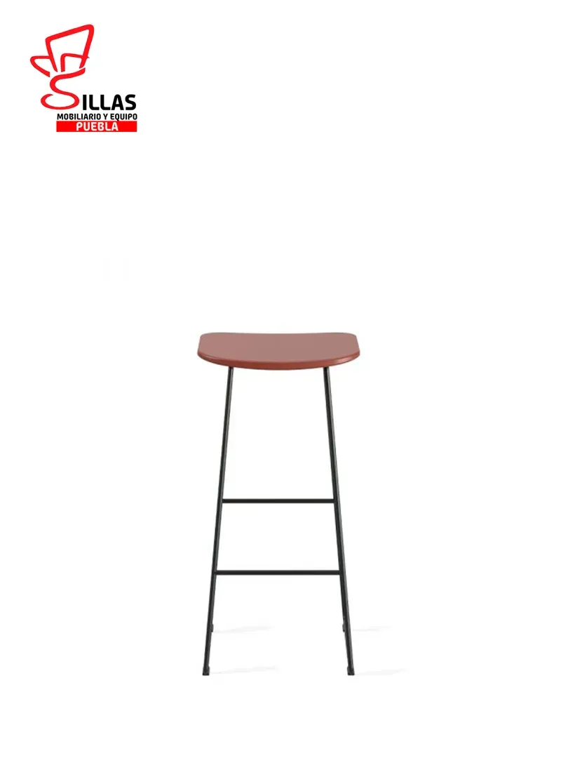 Se trata de un taburete delgado y ligero de acero en barra, equipado con un asiento de madera o de polipropileno (ambos as...