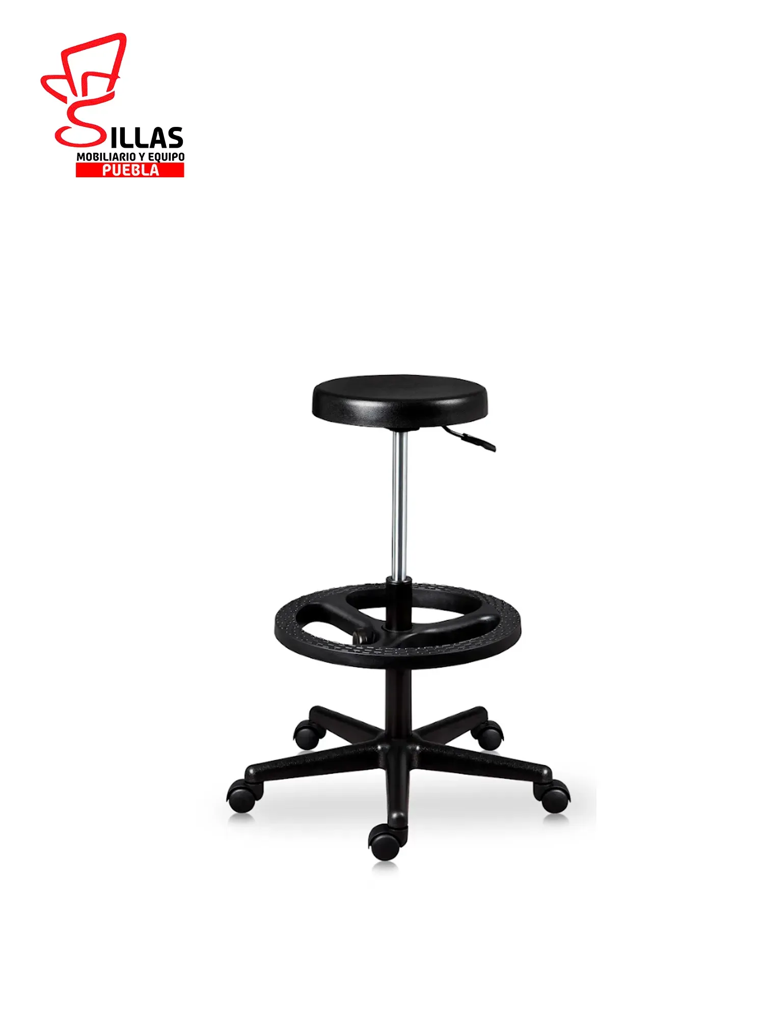 Acojinado con poliuretano compacto suave de uso industrial con interior en madera de aglomerado / Plato con palanca de ajuste para pistón neumático tipo cajero con aro de nylon / Cruceta de 5 puntas inyectada en poliuretano y rodajas de 50 MM