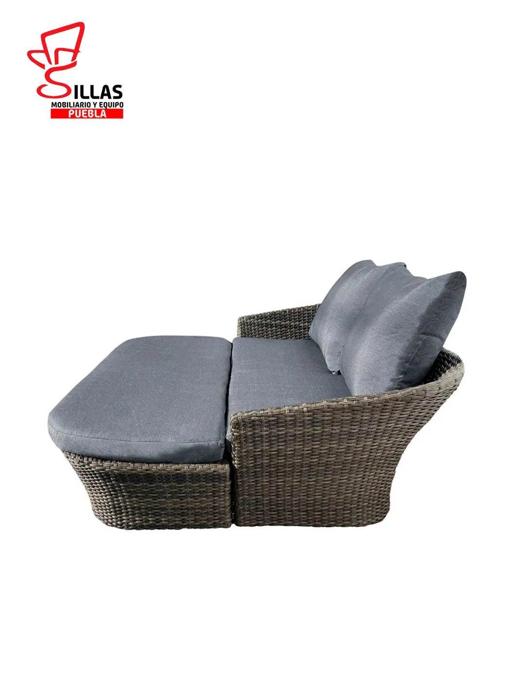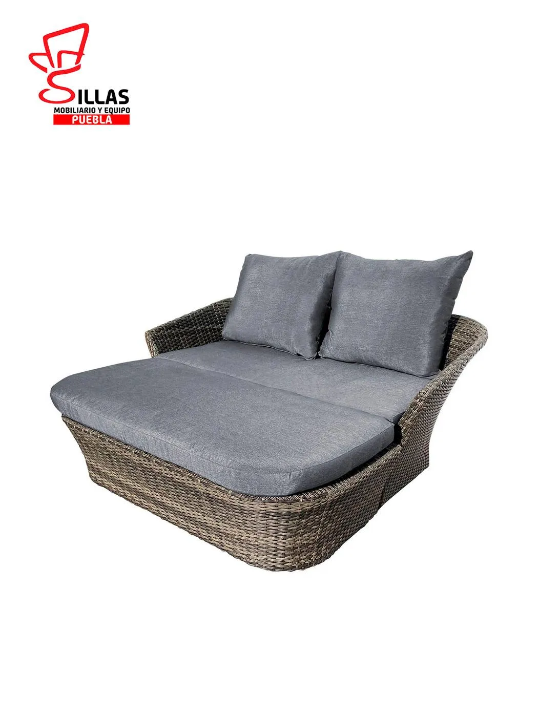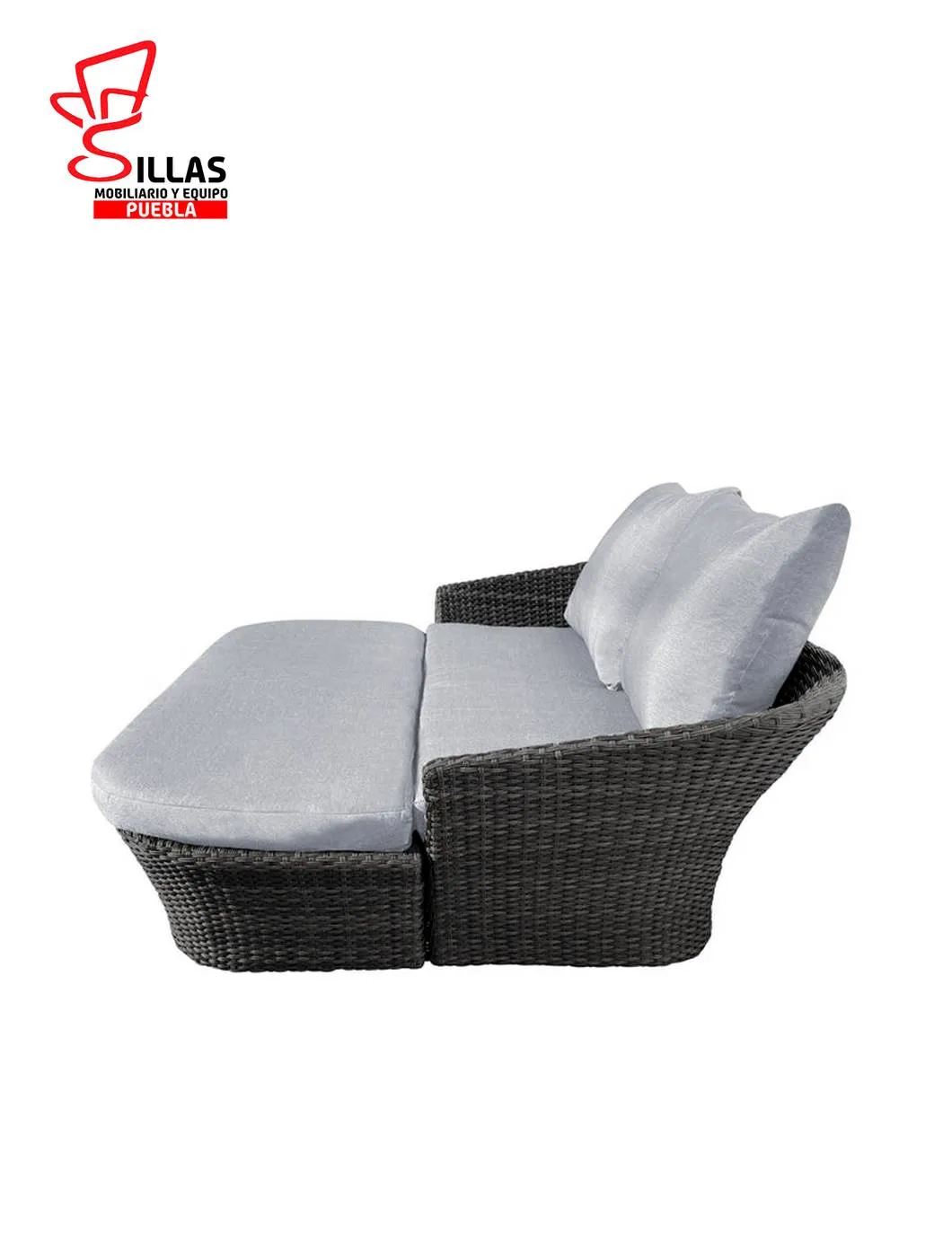 Camastro Quadro * Fabricado con estructura de aluminio y cubierta de rattan sintetico resistente al agua , tapizado en tejido de poliester resisntente a rayos UV ideal para resaltar espacio de relajamiento. Ancho: 138 Profundidad: 140 Altura: 84 cms