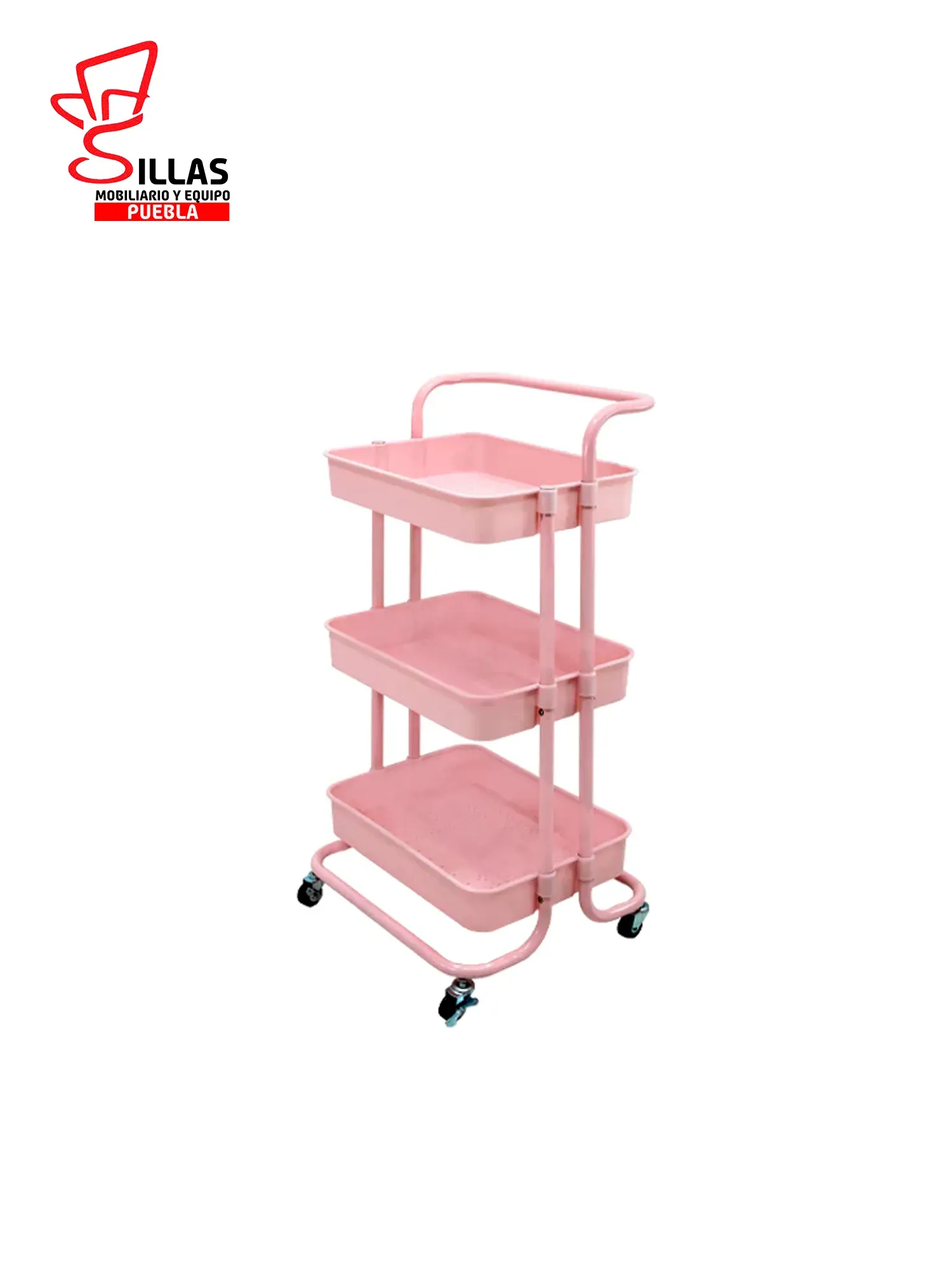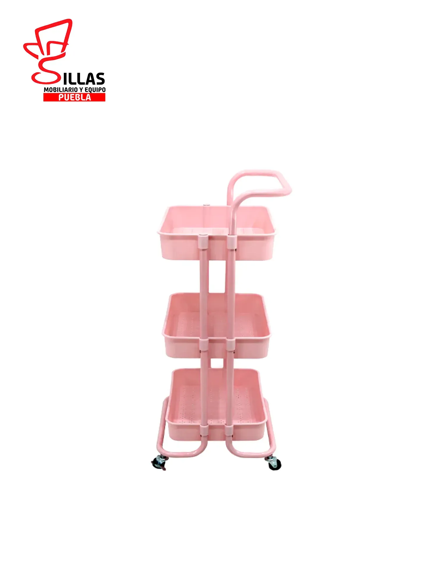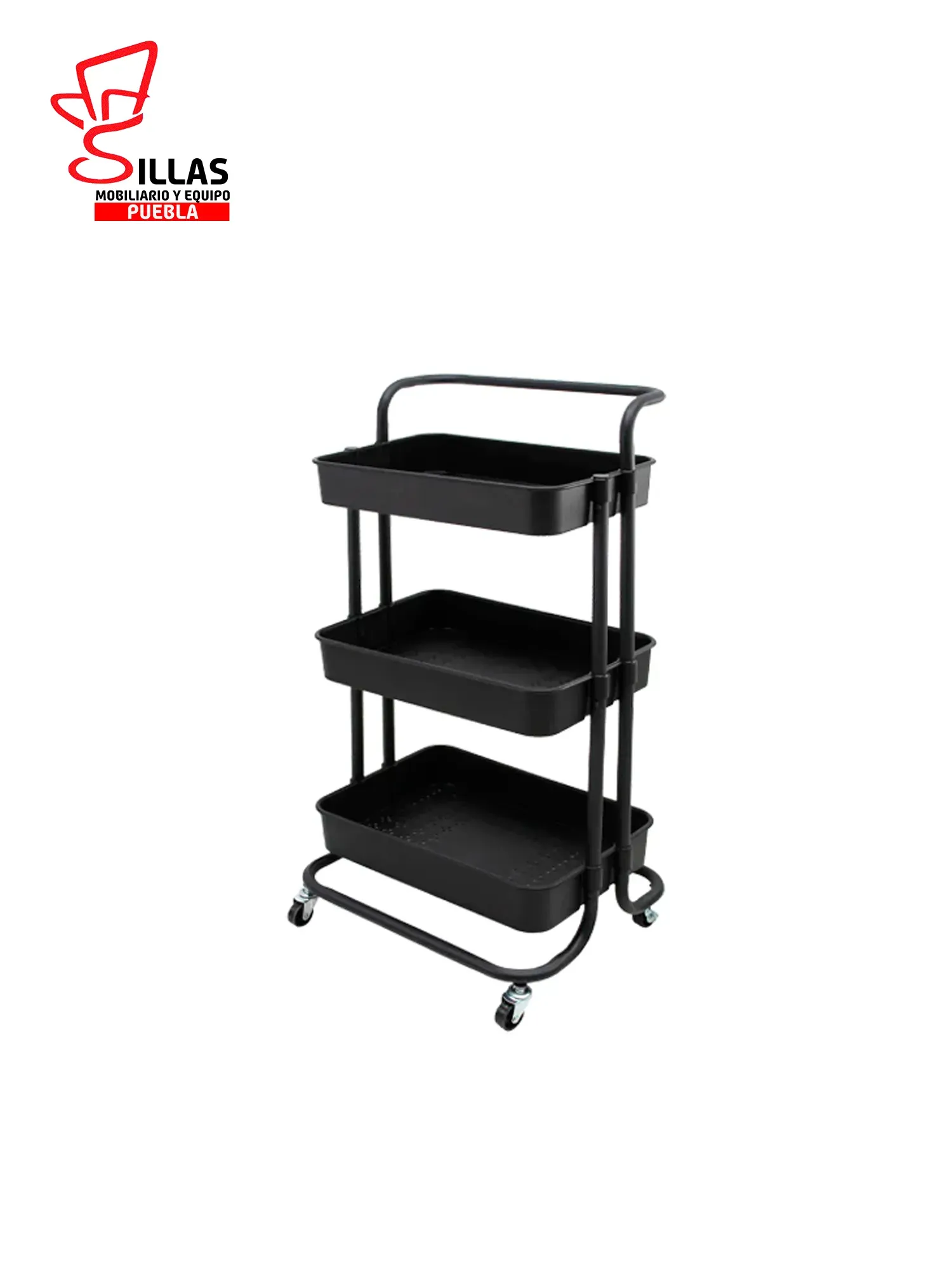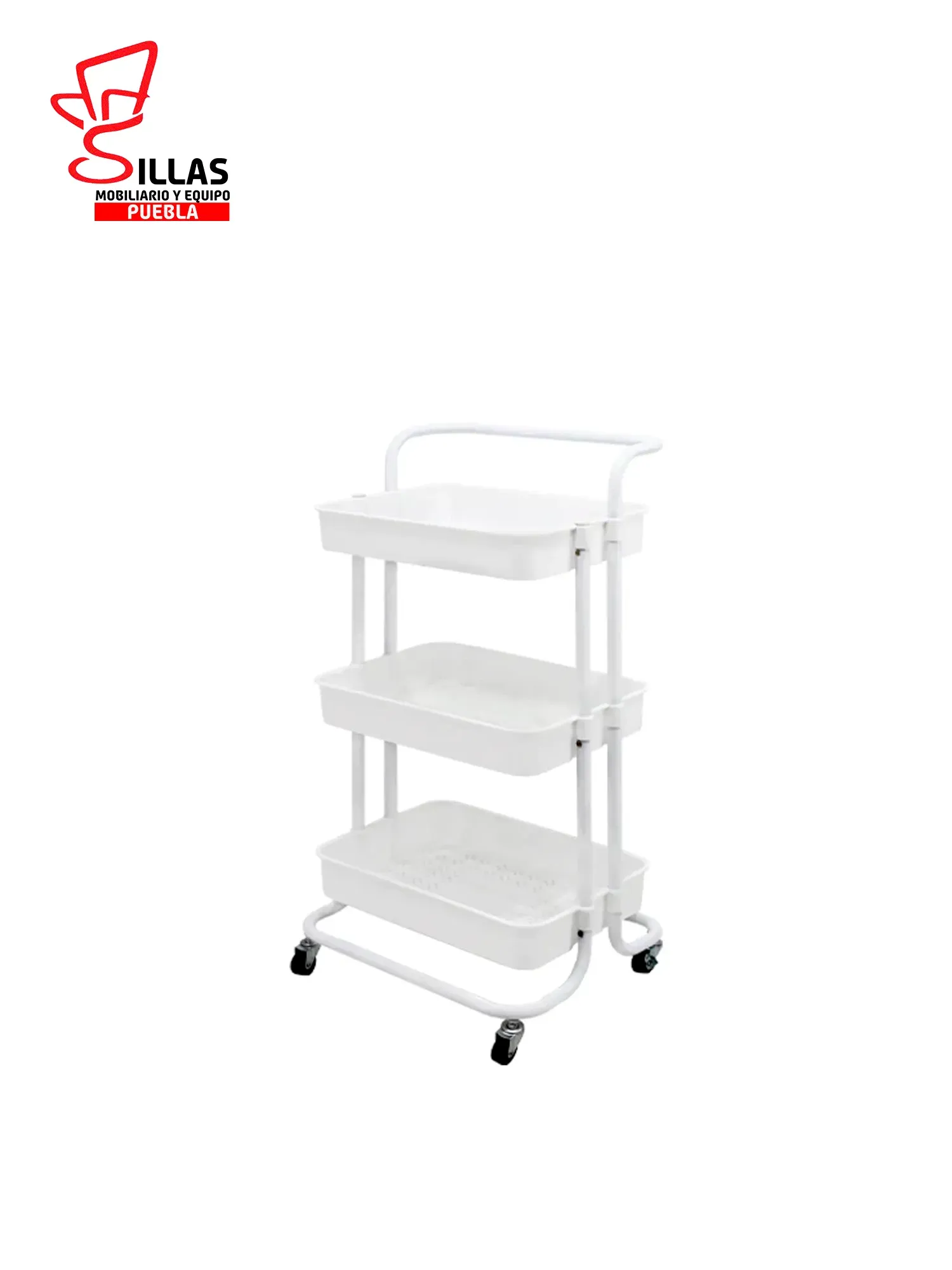 Carrito Organizador Trendy * Fabricado en estructura de tubo redondo metalica , dotada de 3 entrepaños de plástico multiperforado y ruedas de poliuretano inyectado para una movilidad práctica . Medidas Ancho: 42 Profundidad: 33 Altura: 87 cms