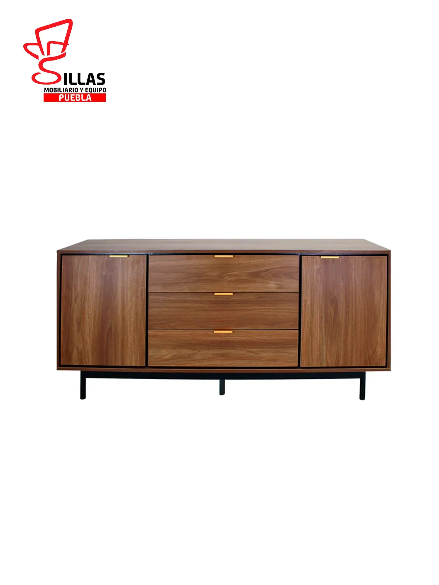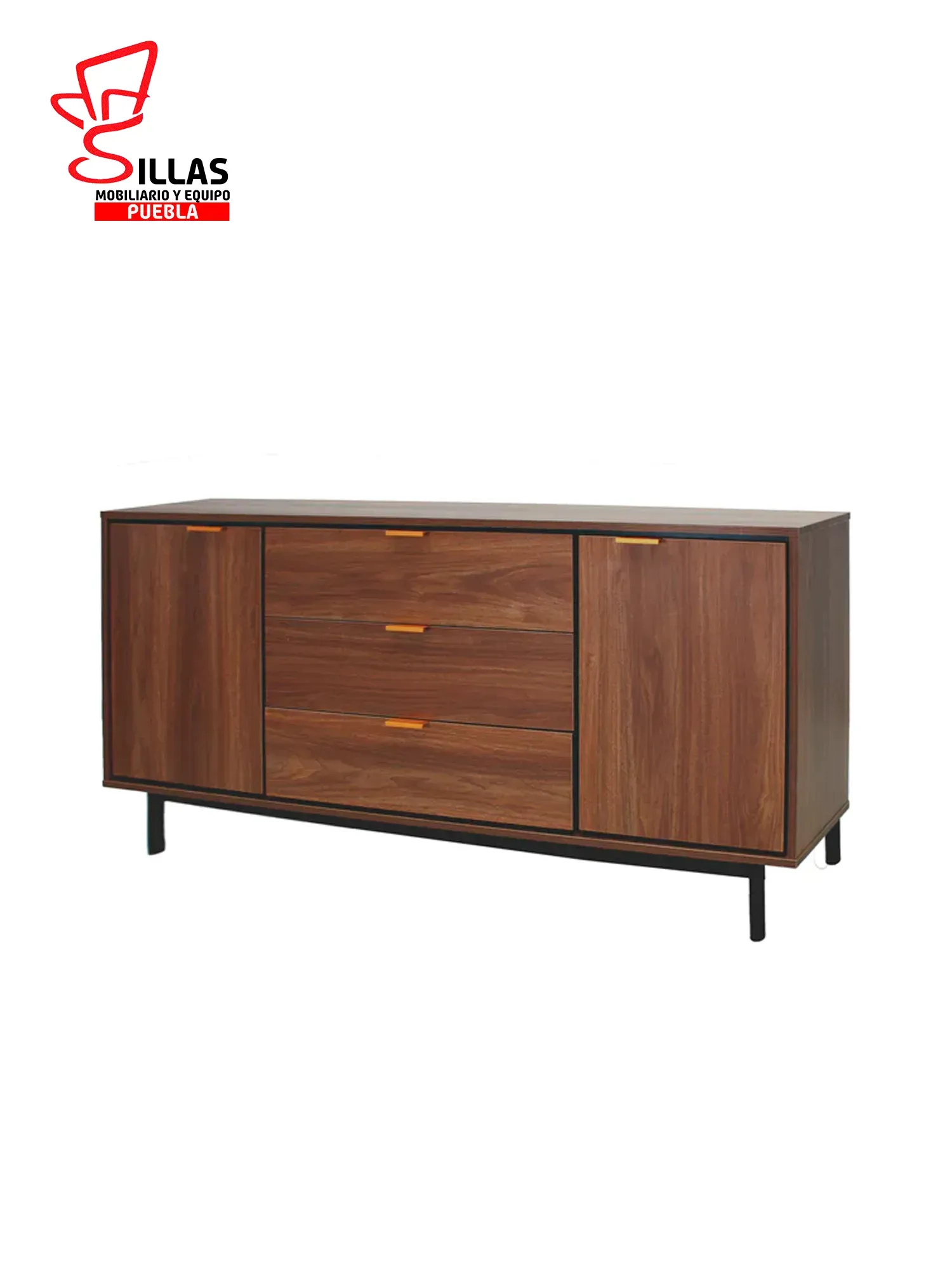 Credenza Portofino * Fabricada en Melamina de 14 MM color nogal , dotada de 3 cajones con correderas y 2 puertas de alta resistencia , ideal para realzar cualquier espacio.