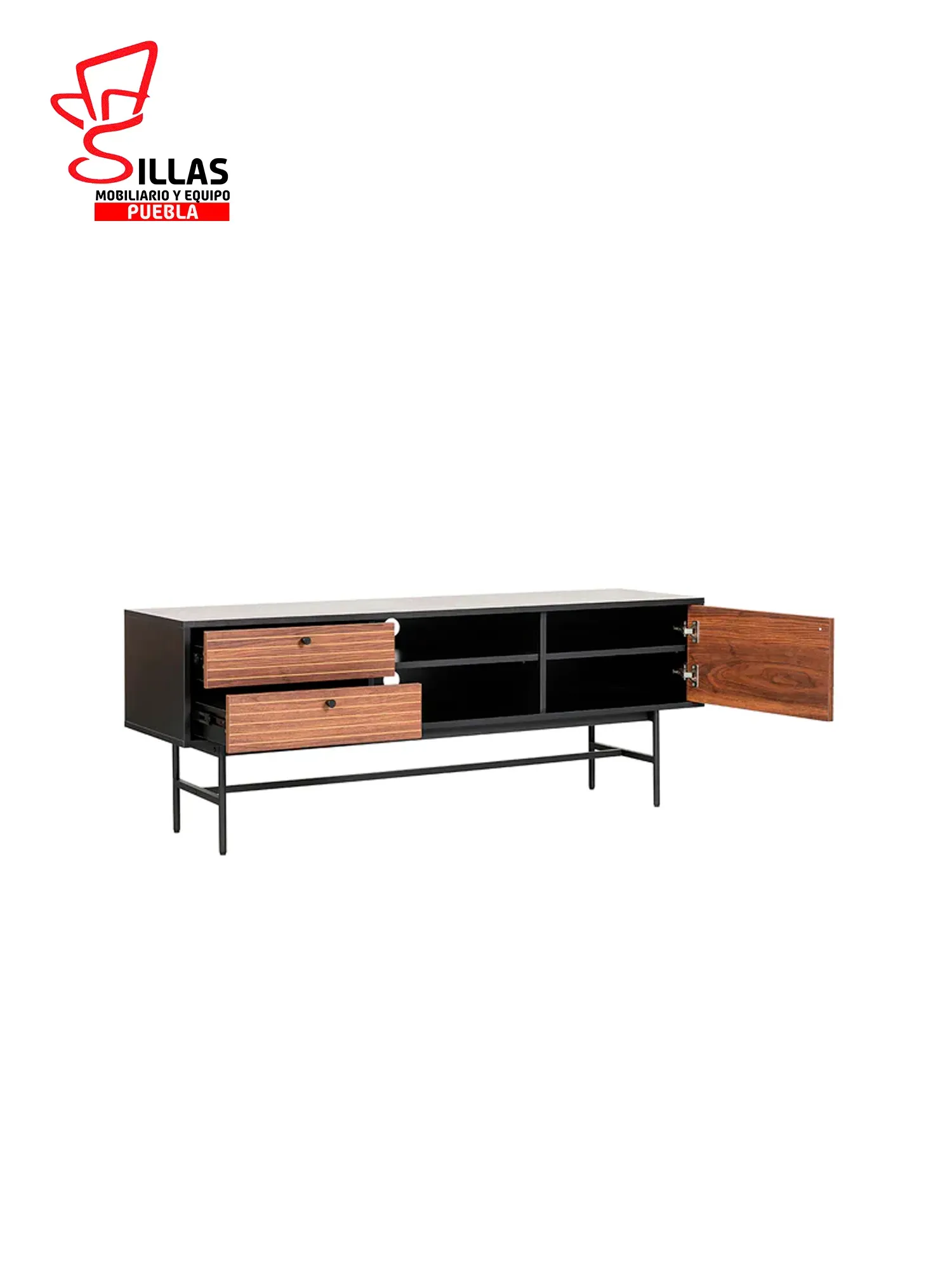 Mueble TV Piamonte * Fabricada en Melamina de 14 MM color nogal , dotada de 3 cajones con correderas y 2 puertas de alta resistencia , ideal para realzar cualquier espacio.