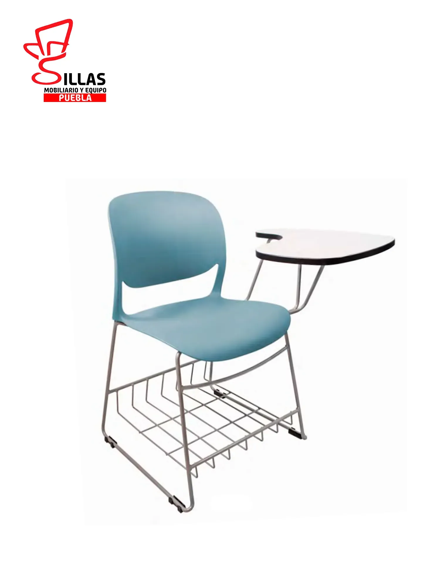 Silla pupitre outline, con diseño ergonómico para máximo confort, fabricado en una sola pieza de polipropileno y fibra de vidrio. Cuenta con estructura tipo trineo en cero sólido conformado y terminado en pintura electrostática con regatones de polipropileno