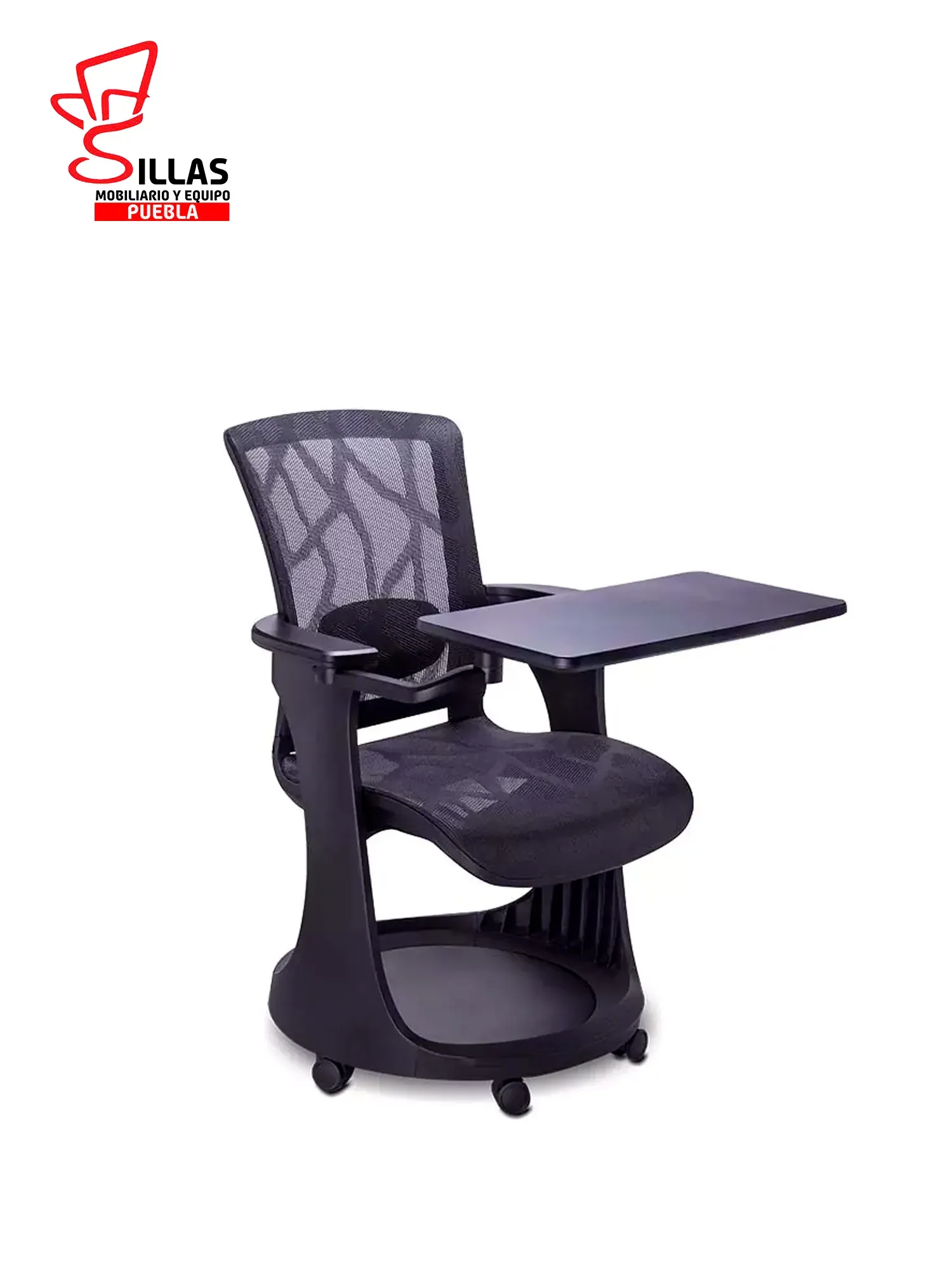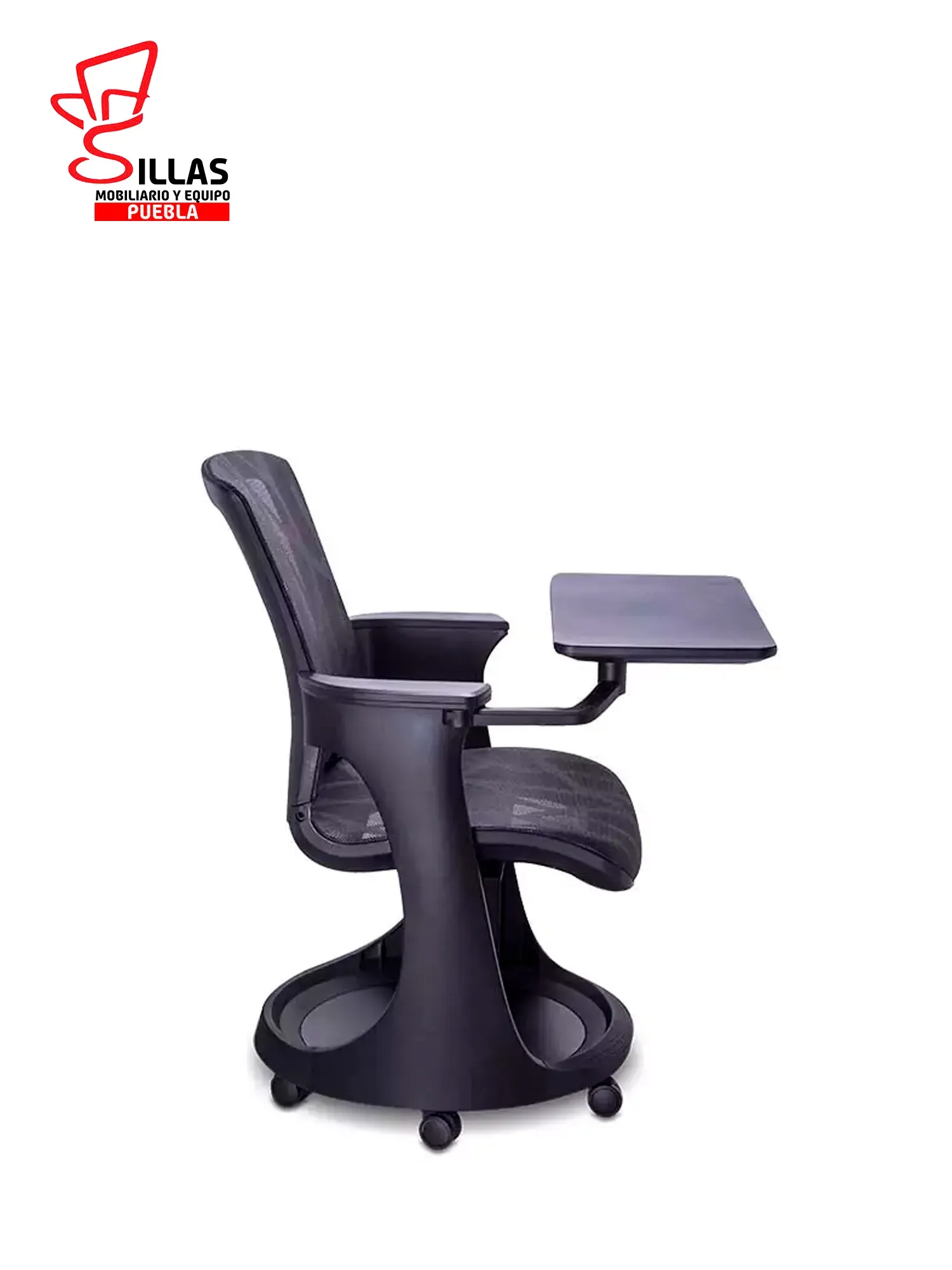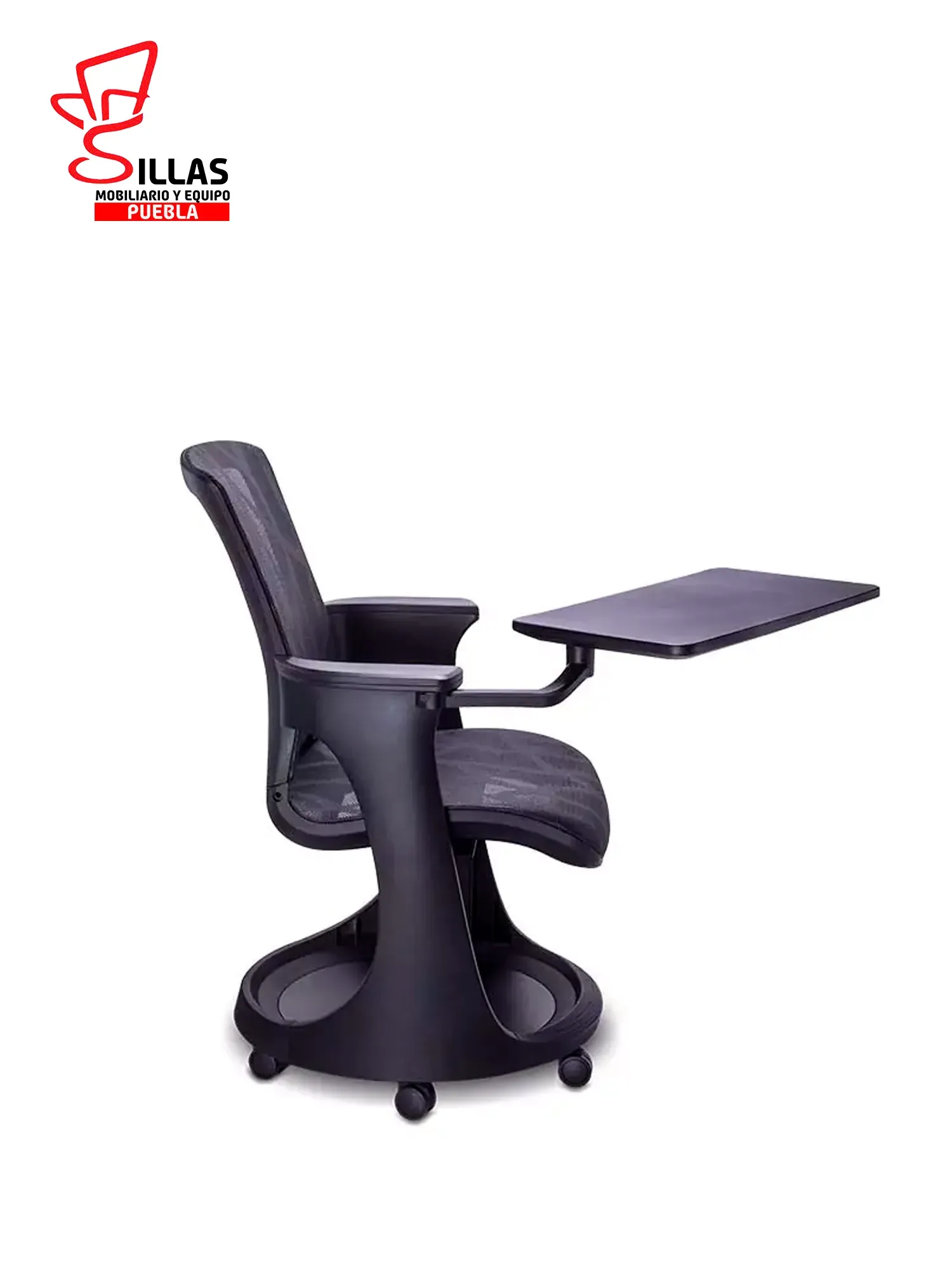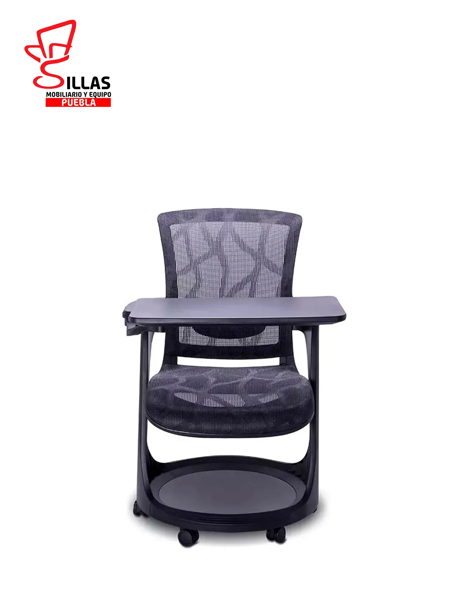 Pupitre skate training con estructura en polipropileno de alto impacto, base circular como espacio de guarda, rodamientos con recubrimiento de poliuretano, respaldo y asiento con diseño ergonómico en mesh de nylon con soporte lumbar, tableta de escritura multi-posicional.