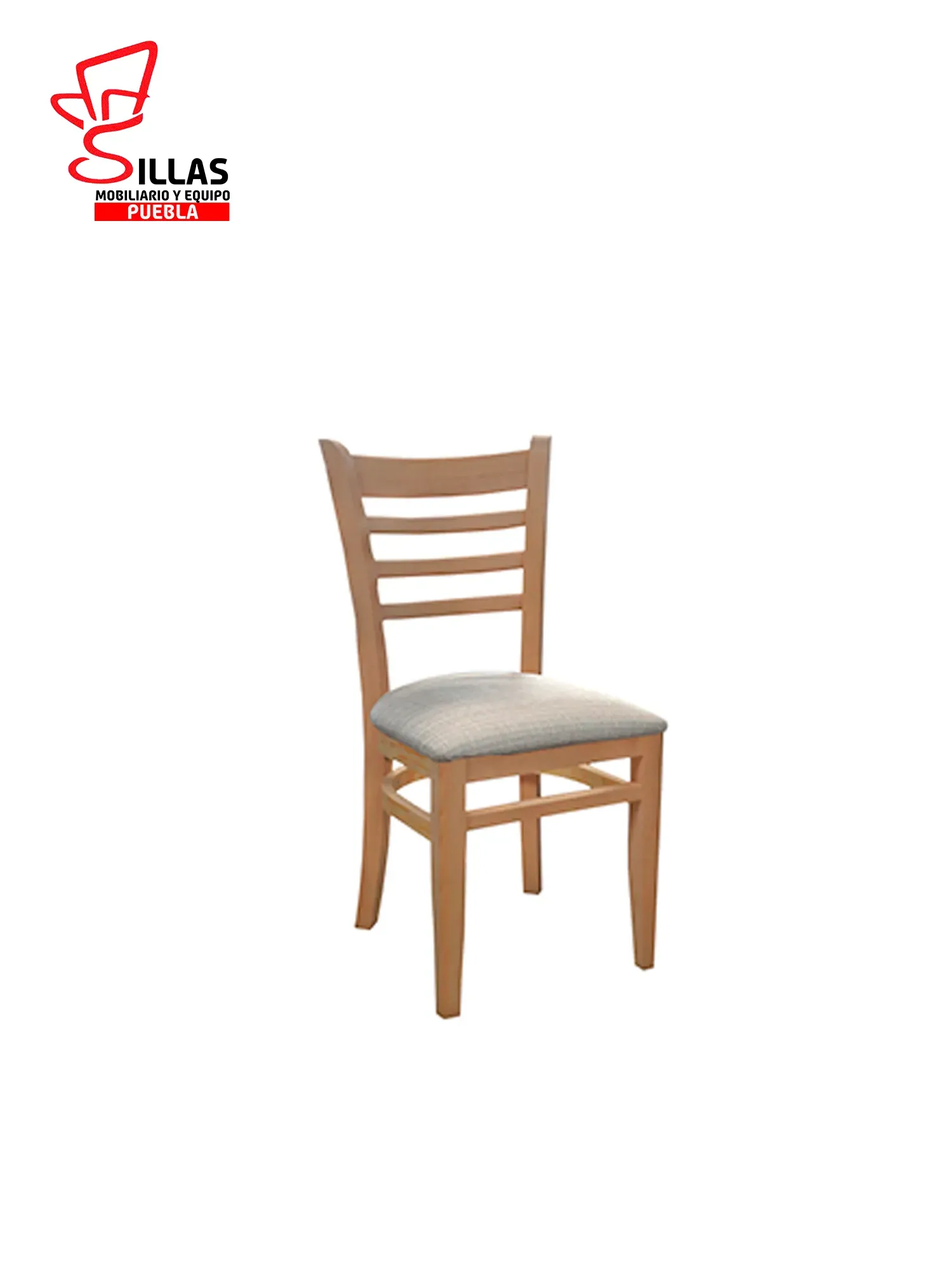 Silla para restaurante fabricada en madera de haya natural / Asiento tapizado en tela retardante al fuego en color a elegir / Resbalones de poliuretano