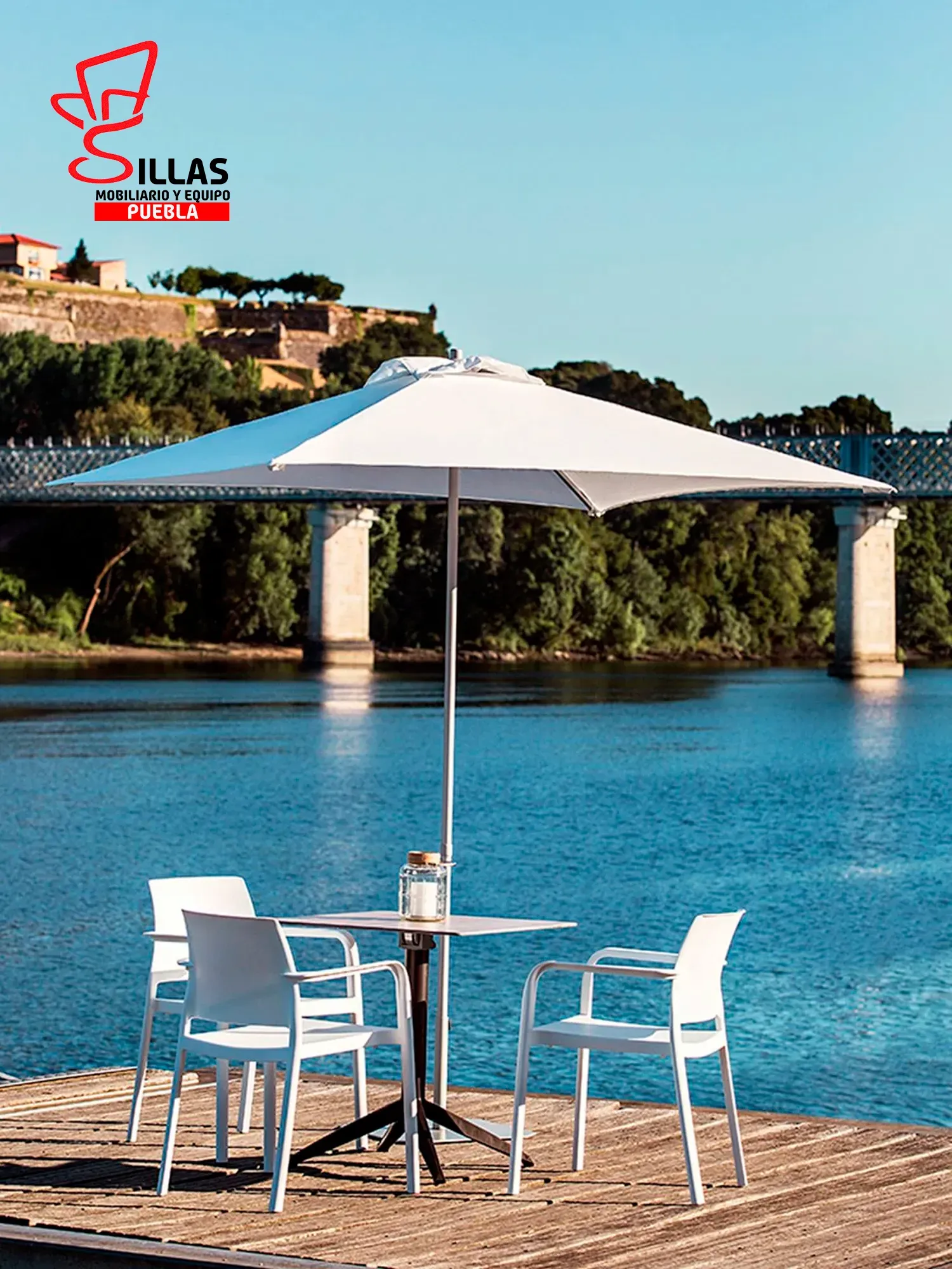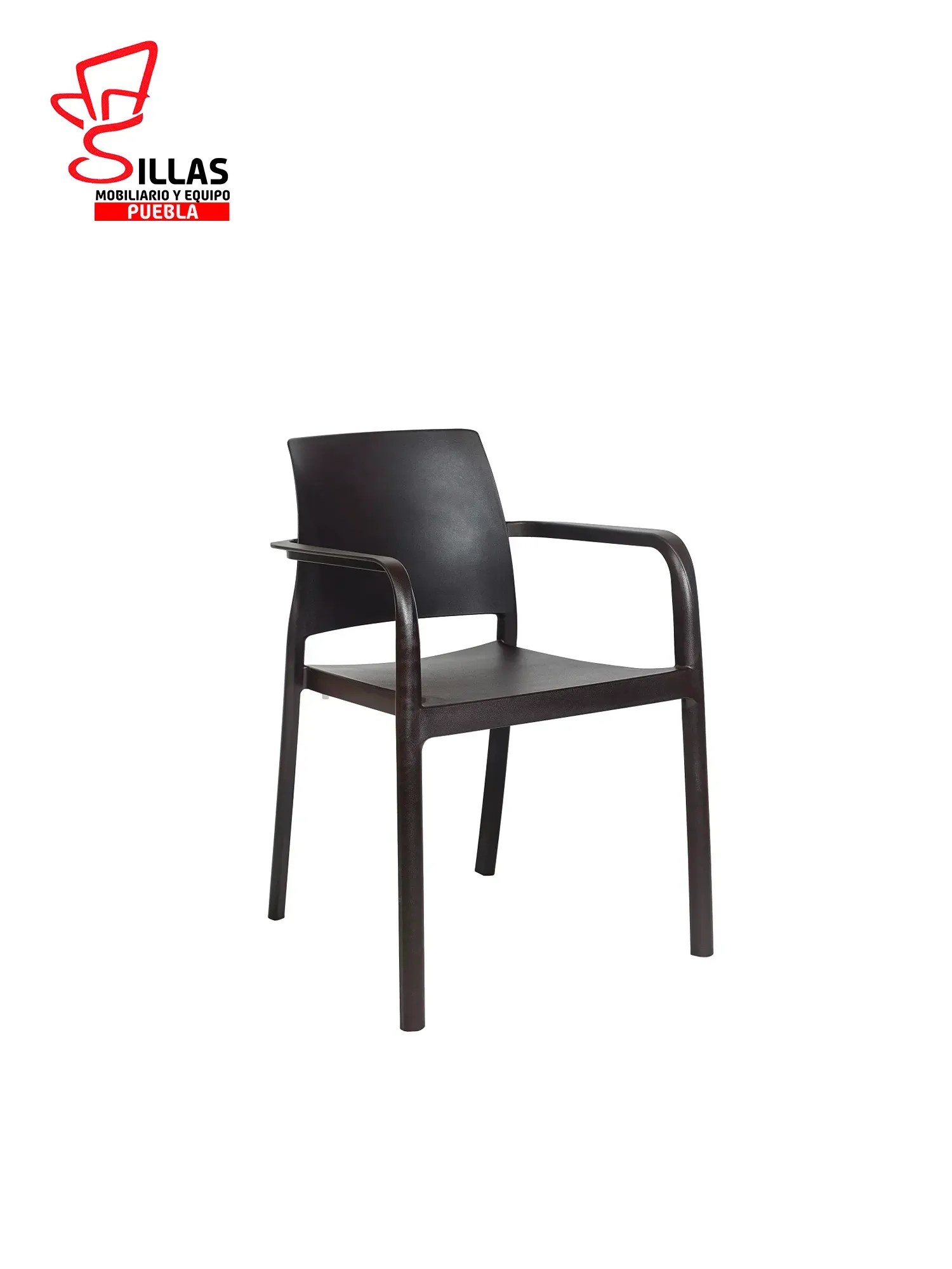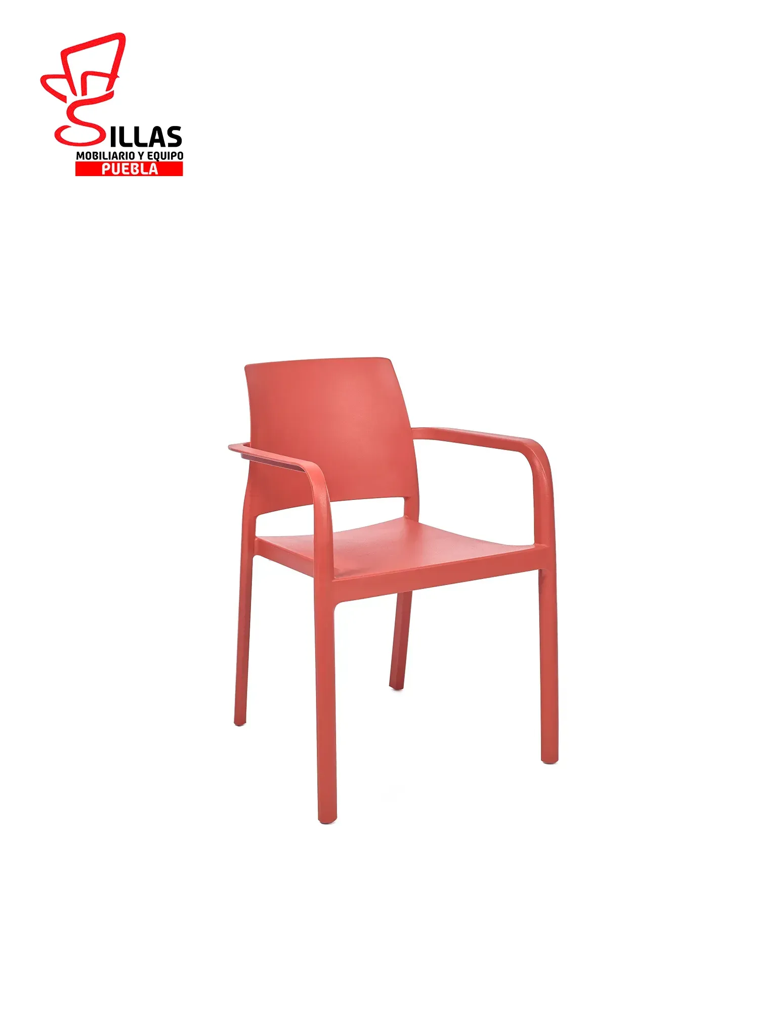 Silla con brazos apilable para uso exterior e interior. Polipropileno reforzado con fibra de vidrio. Inyección por gas. Tacos antideslizantes. 100% reciclable. Anti UV. Muy fácil de lavar y desinfectar. Producto de uso público y doméstico.