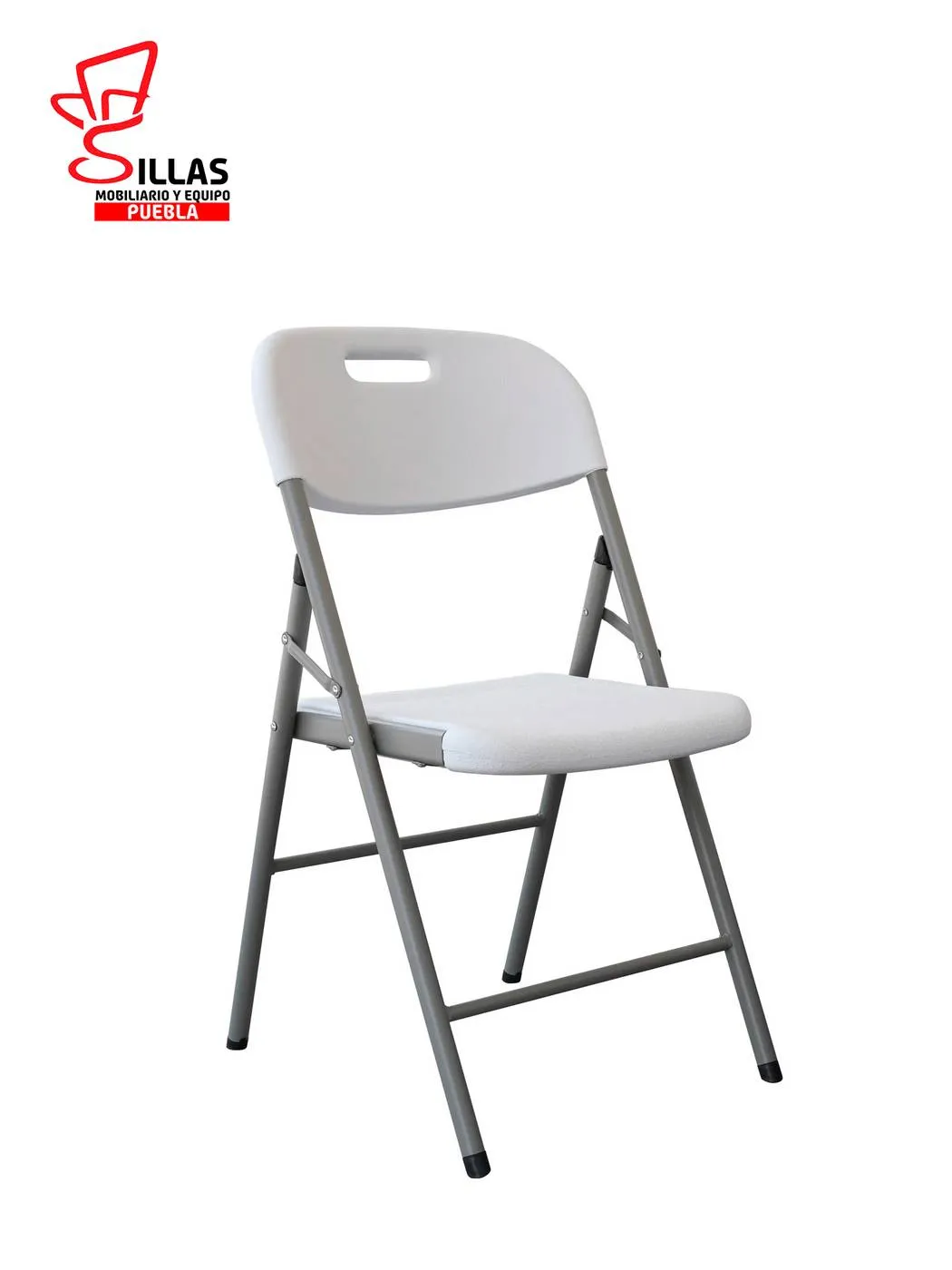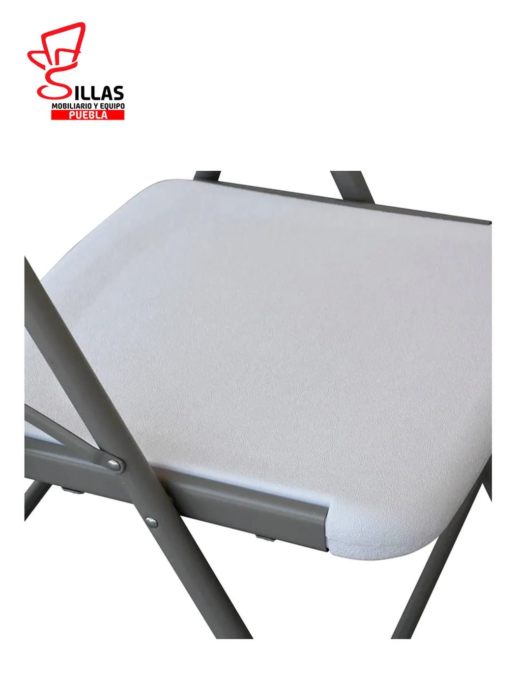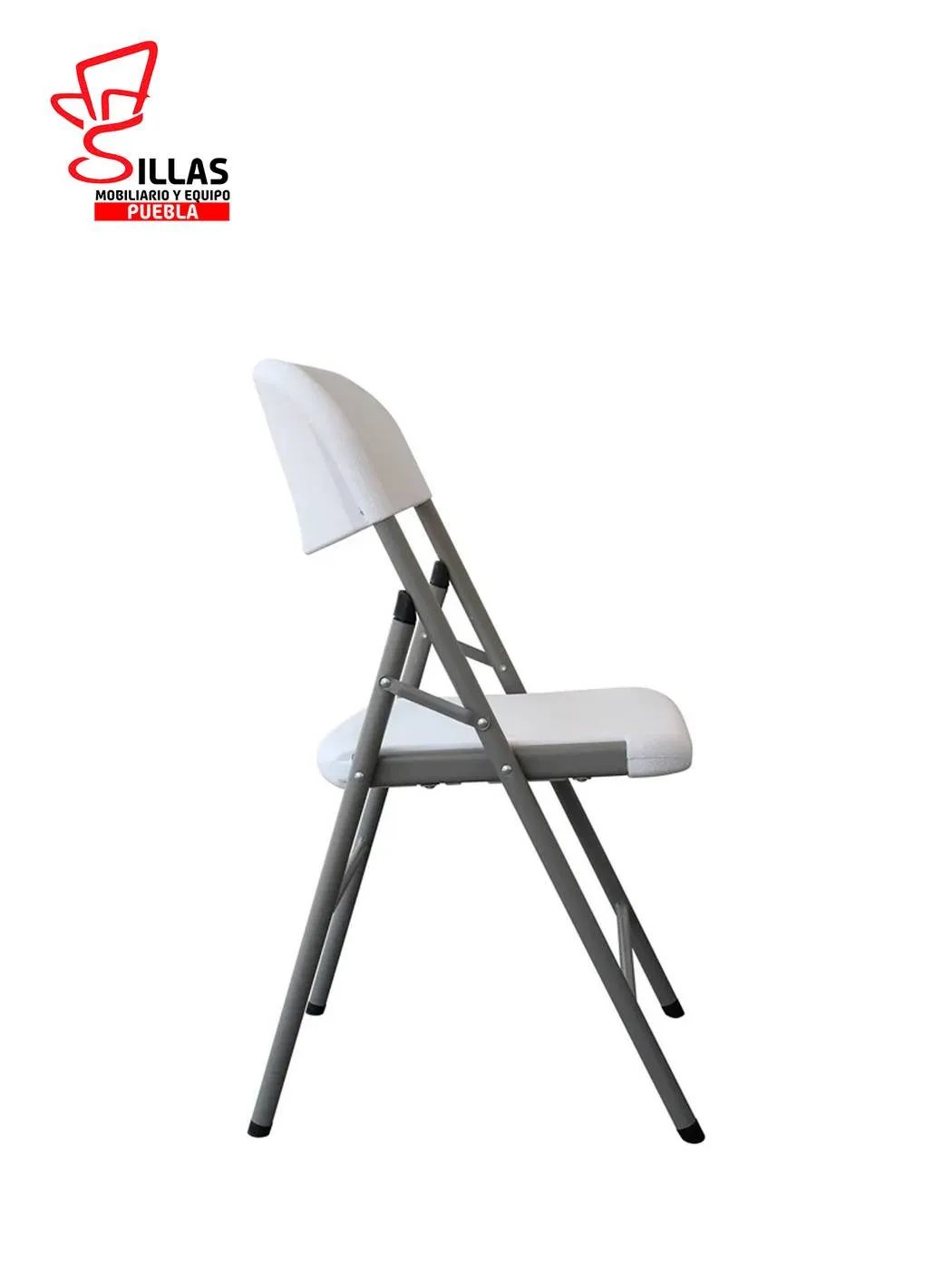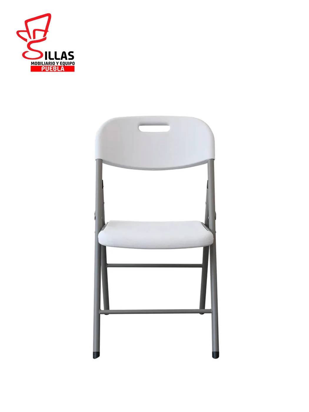 Silla Inyectada Plegable • Estructura de tubo redondo de 1" Calibre 18 / Polietileno inyectado color blanco asiento y respaldo / Resbalones de poliuretano color negro• Altura: 84.5 Cms • Ancho: 45 Cms • Profundidad: 50.5 Cms Entregas personales CDMX / Puebla
