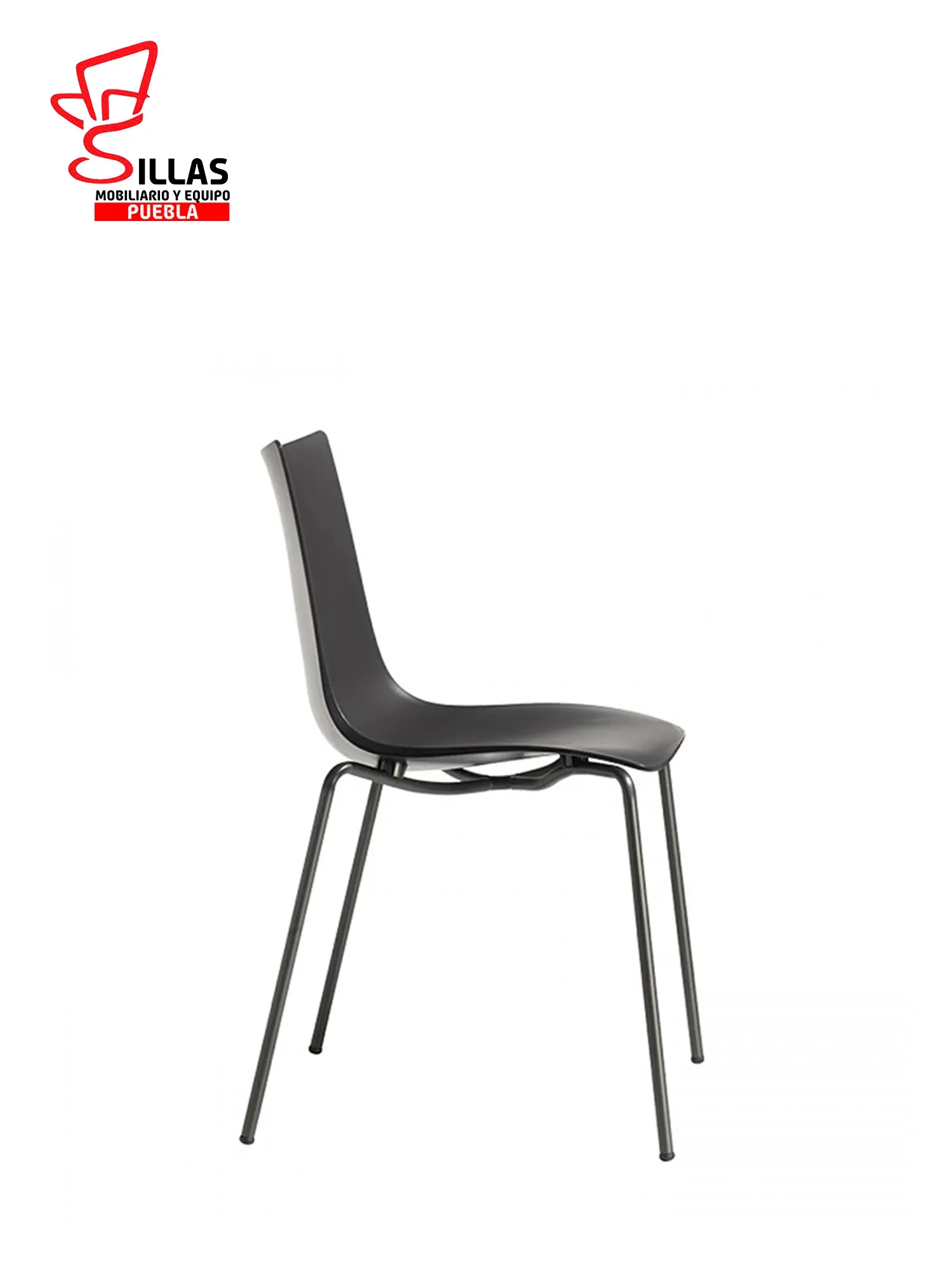 Silla con cuerpo en tecnopolímero reciclable, con estructura en opción a color negro , blanco , antracita o cromado.