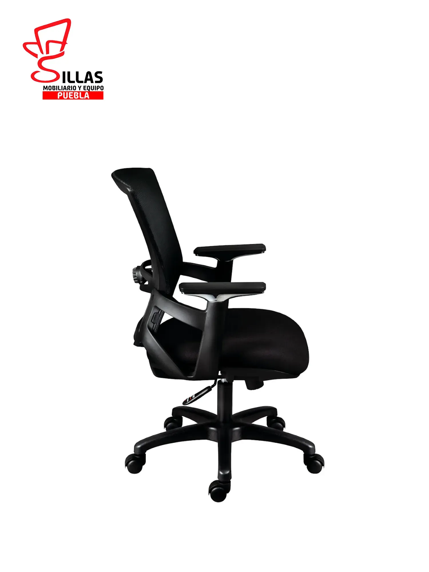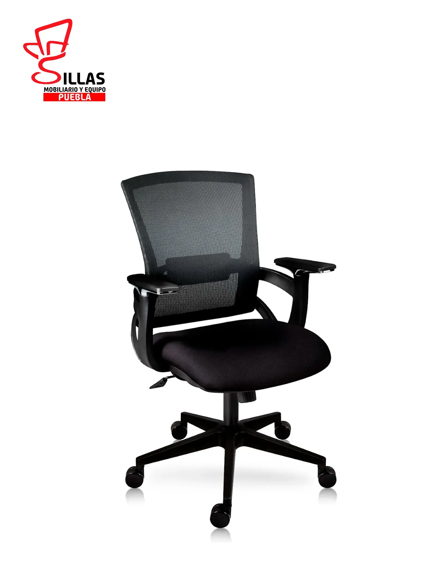 Respaldo tapizado en malla con soporte lumbar ajustable / Cabecera tapizada en malla y ajustable en altura / Asiento de espuma estándar tapizado en tela tipo mesh / Brazos de polipropileno con acabados cromados / Mecanismo con palanca para activar pistón y bloqueo ...